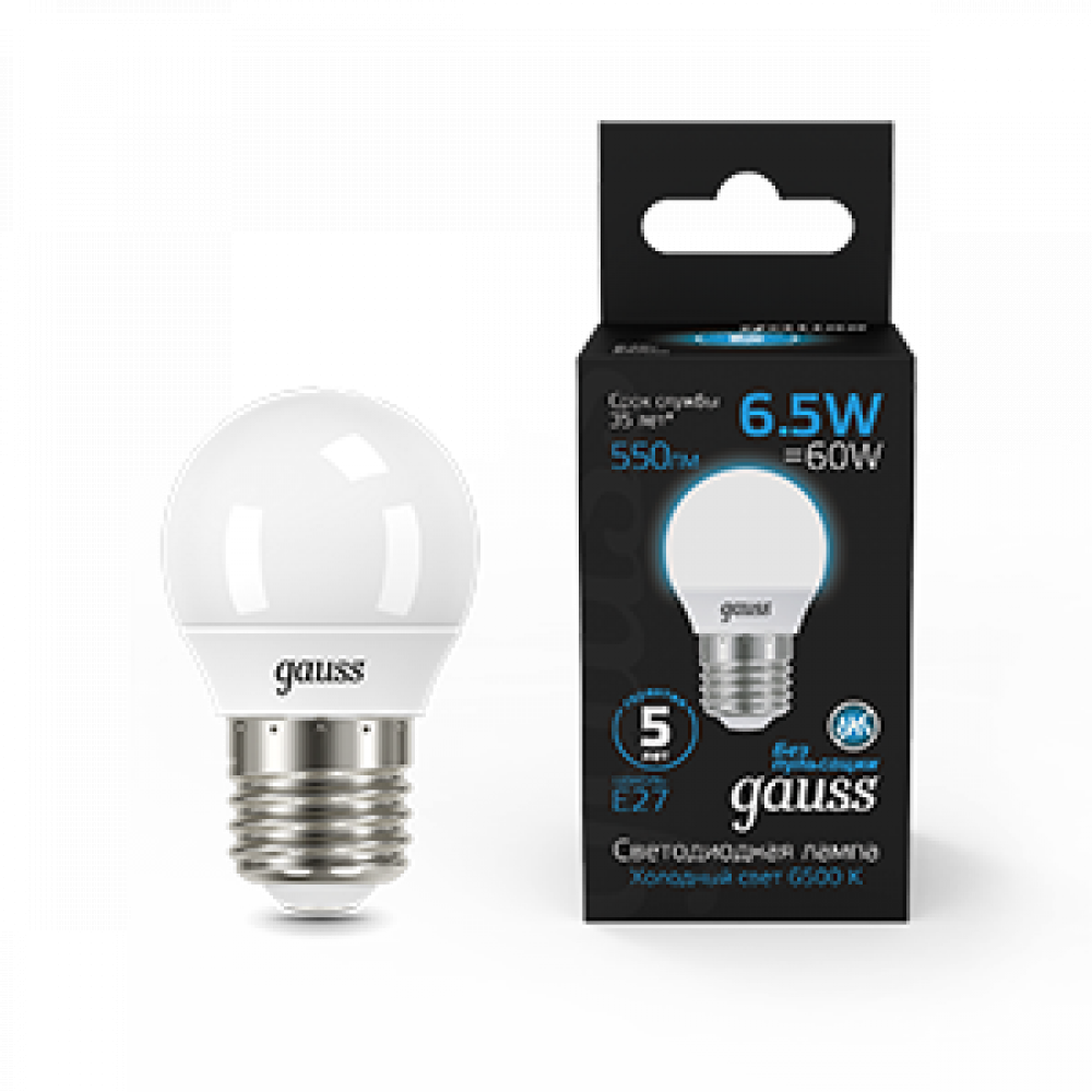Лампа Шар 6.5W 550lm 6500K E27 LED 1/10/100 105102307, Лампа светодиодная