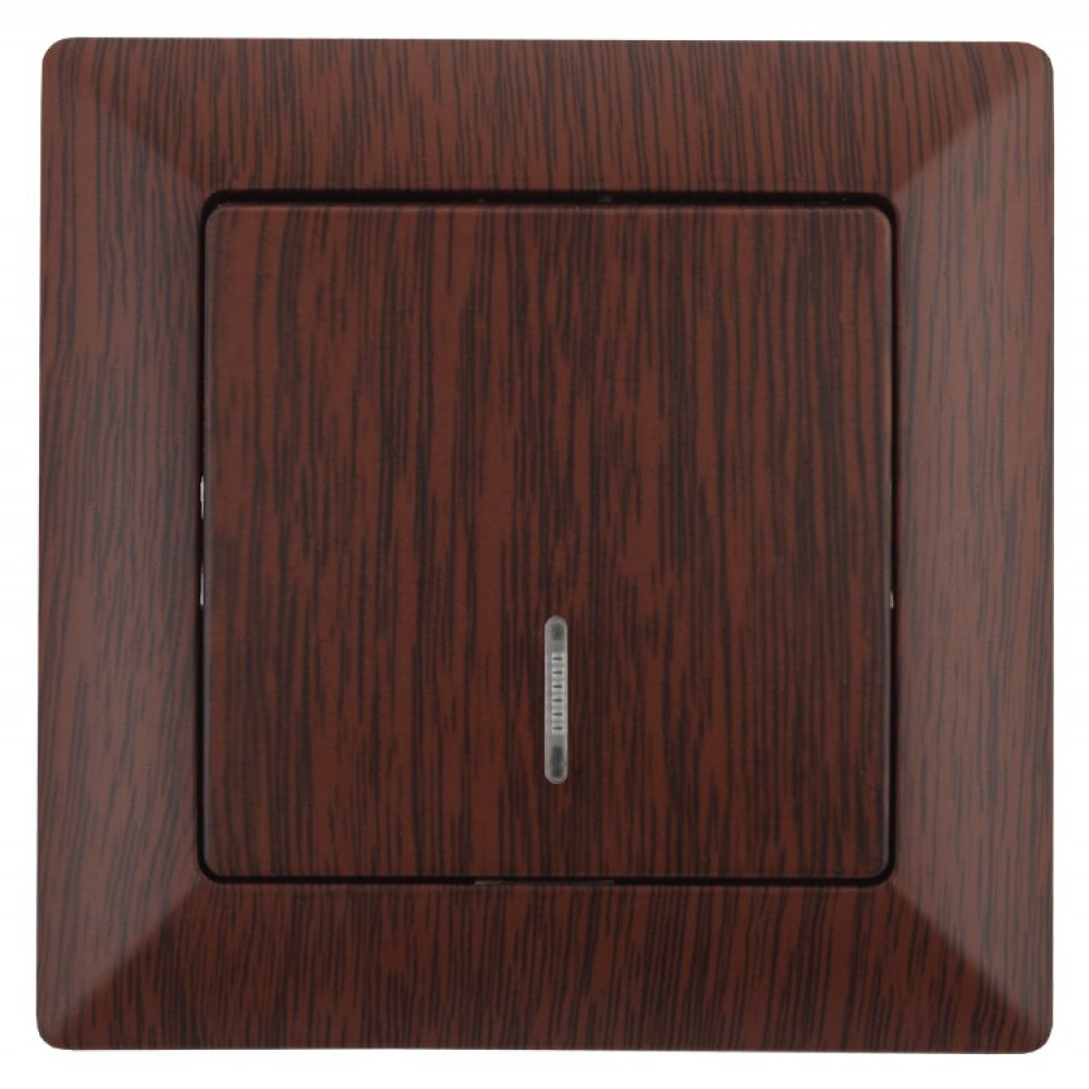 Выключатель Solo 4-102-10 одноклавишный с подсветкой, 10А-250В, IP20, СУ, венге Б0053570, Выключатель и переключатель скрытого монтажа