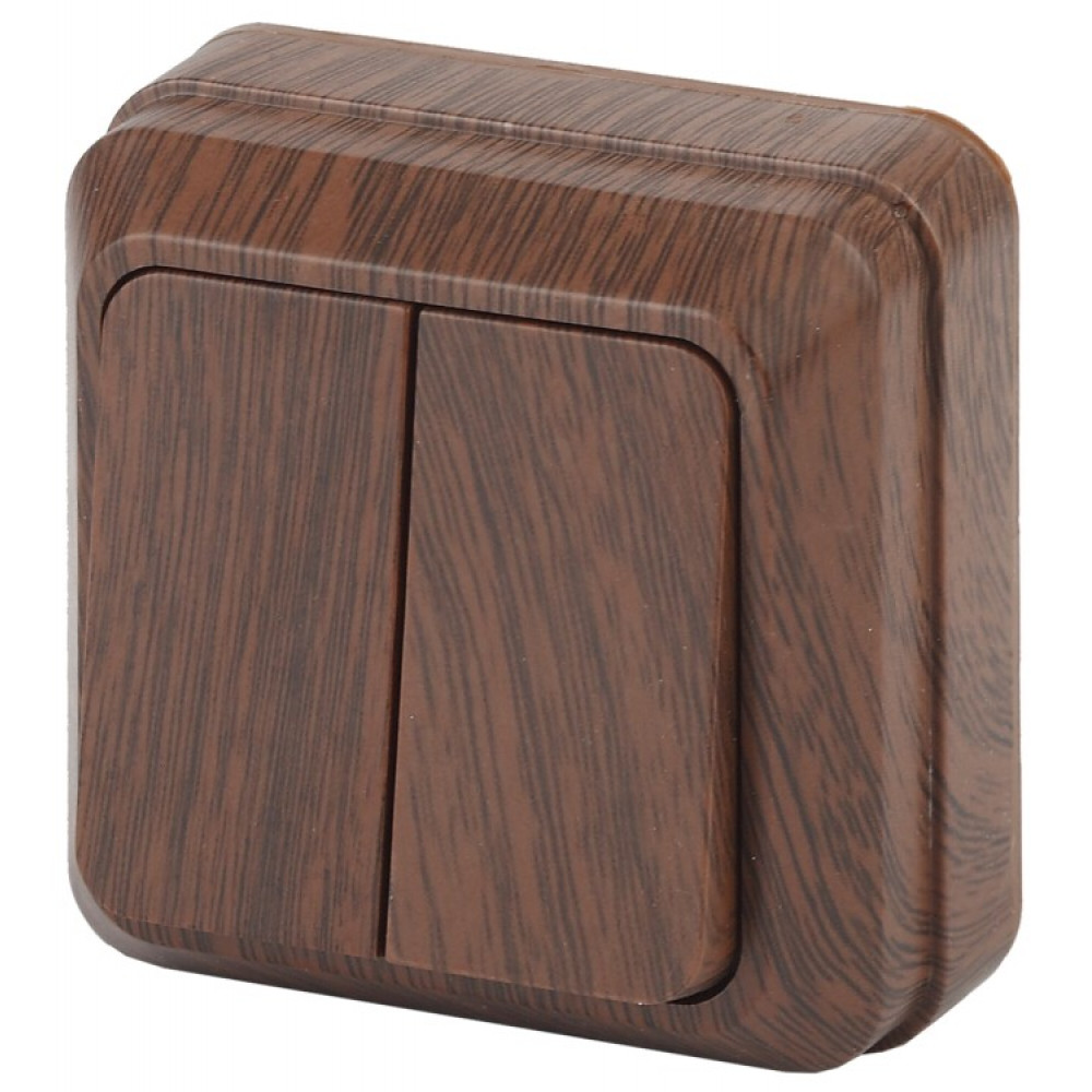 Выключатель Quadro 2-104-10 двухклавишный 10А-250В, IP20, ОУ, венге Б0053761, Выключатель и переключатель открытого монтажа