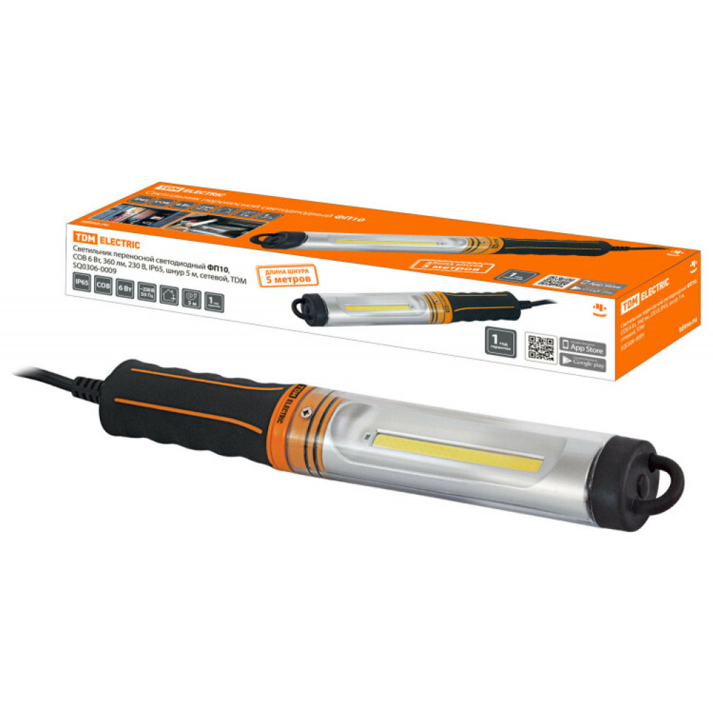 Светильник переносной светодиодный ФП10, COB 6 Вт, 360 лм, 230 В, IP65, шнур 5 м, сетевой, SQ0306-0009