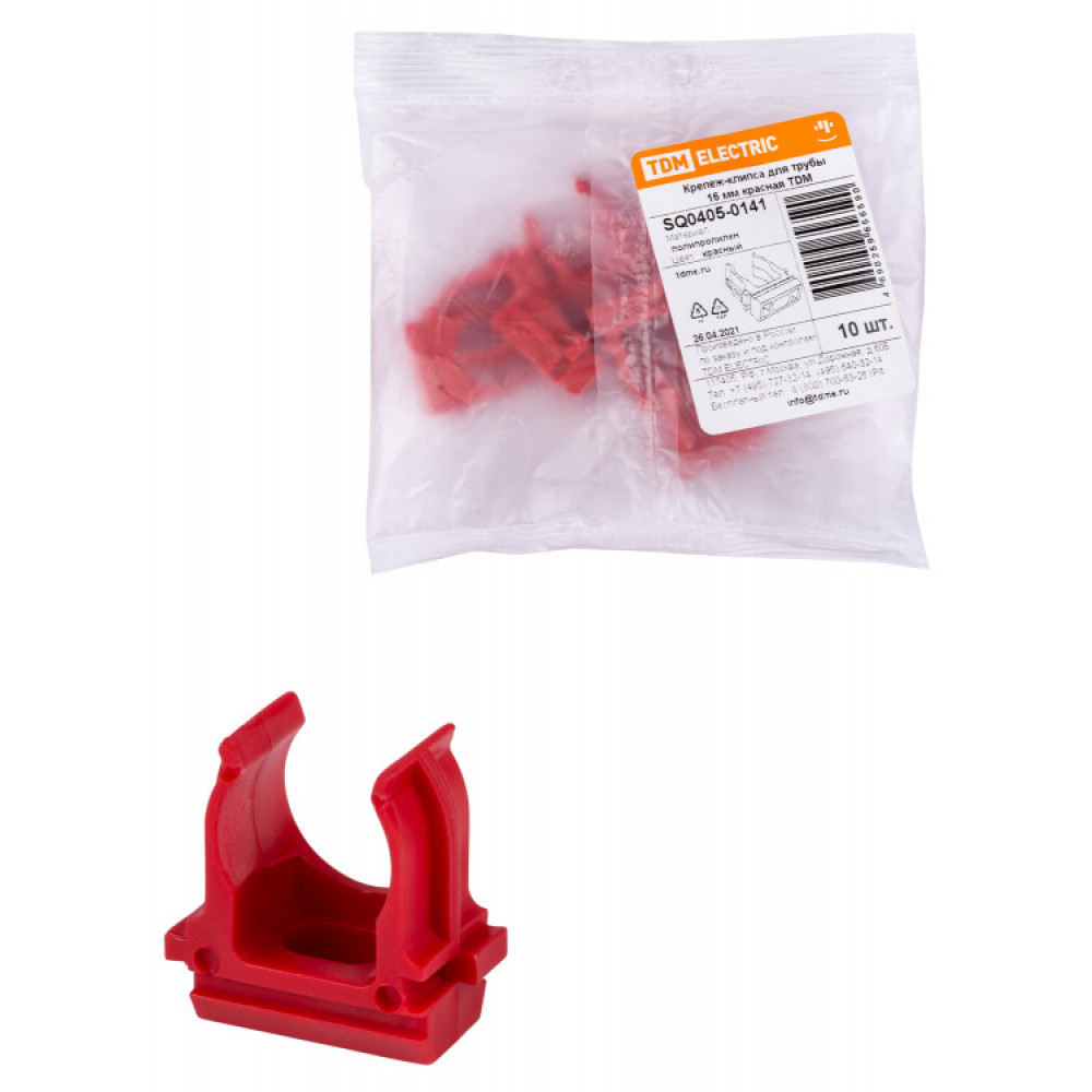 Крепеж-клипса для трубы ПНД 16 мм (10 шт.) красная SQ0405-0141, Труба и короб для прокладки кабеля