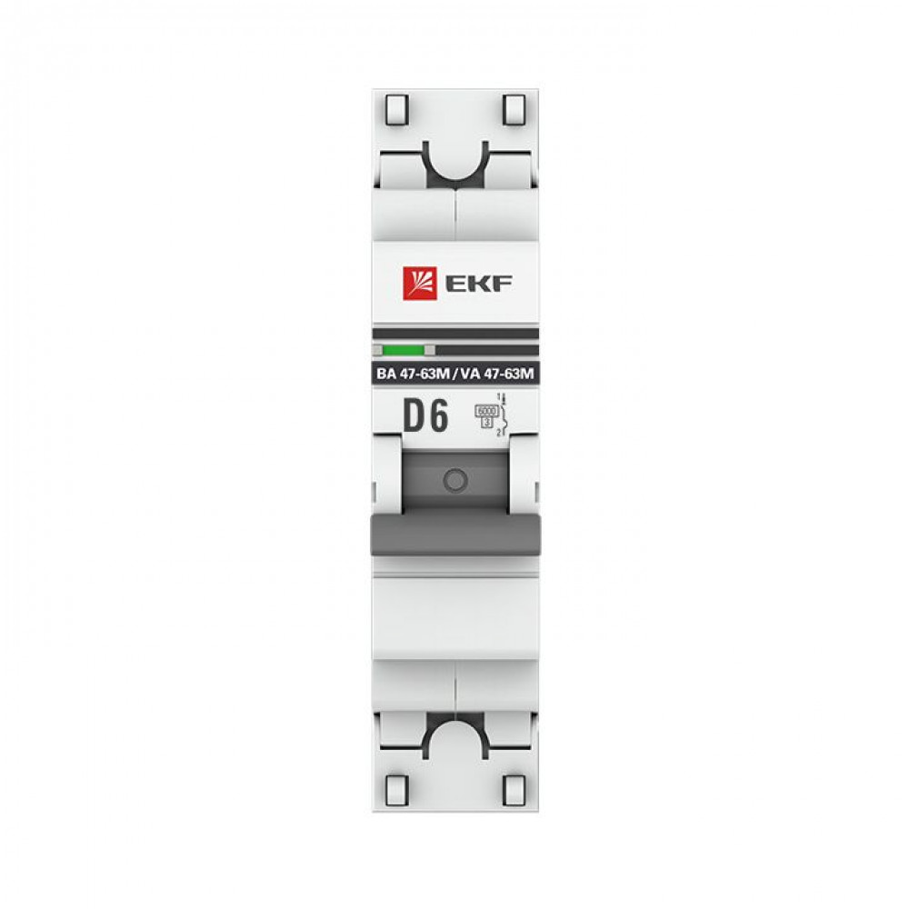 Описание Автоматический выключатель 1P 6А (D) 6кА ВА 47-63M без теплового расцепителя PROxima mcb4763m-6-1-6D-pro