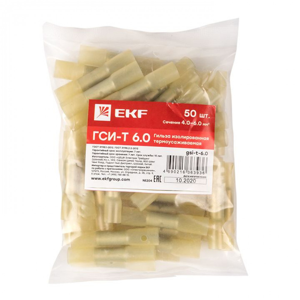 Доставка Гильза изолированная термоусаживаемая ГСИ-Т 6.0 (50шт.) gsi-t-6.0
