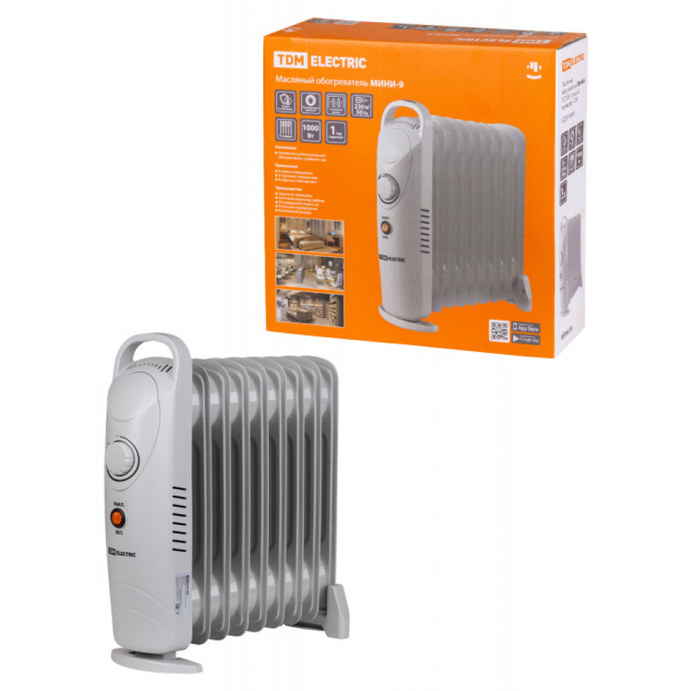Масляный обогреватель МИНИ-9, 1000 Вт, 9 секций, термостат, SQ2501-0909, Обогреватель электрический