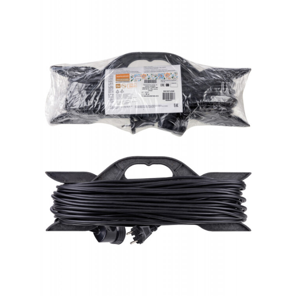 Описание Удлинитель-шнур на рамке силовой народный ПВС 2200 Вт б/з, 30м, штепс. гнездо SQ1307-0308