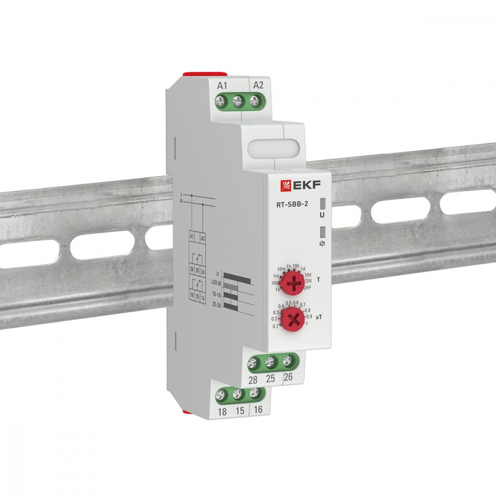 Реле времени RT-2C EKF PROxima является электронным коммутационным аппаратом с регулируемой установкой времени. Реле предназначено для создания циклической работы схемы с задержкой на включение. Переключение диапазонов времени производится с помощью поворотных регуляторов, расположенных на лицевой поверхности реле. Реле применяется в системах промышленной и бытовой автоматики: в вентиляционных, отопительных, осветительных. Категория применения – АС-15 (управление электромагнитами мощностью свыше 72 Вт). Многофункциональное реле времени RT-10 EKF PROxima является электронным коммутационным аппаратом с регулируемыми режимами работы и регулируемой установкой времени. Реле предназначено для включения или отключения нагрузки по заданным временным величинам и режимам работы. Переключение диапазонов времени и режимов работы производится с помощью поворотных регуляторов расположенных на лицевой поверхности реле. Реле применяется в системах промышленной и бытовой автоматики: в вентиляционных, отопительных, осветительных системах. Категория применения – АС-15 (управление электромагнитами мощностью свыше 72 Вт). Реле времени RT-SBA EKF PROxima является электронным коммутационным аппаратом с регулируемой установкой времени. Реле предназначено для включения нагрузки с задержкой времени включения. Переключение диапазона времени производится с помощью поворотного регулятора, расположенного на лицевой поверхности реле. Реле применяется в системах промышленной и бытовой автоматики: в вентиляционных, отопительных, осветительных системах. Категория применения – АС-15 (управление электромагнитами мощностью свыше 72 Вт). Реле времени RT-2C EKF PROxima является электронным коммутационным аппаратом с регулируемой установкой времени. Реле предназначено для создания циклической работы схемы с задержкой на включение. Переключение диапазонов времени производится с помощью поворотных регуляторов, расположенных на лицевой поверхности реле. Реле применяется в системах промышленной и бытовой автоматики: в вентиляционных, отопительных, осветительных. Категория применения – АС-15 (управление электромагнитами мощностью свыше 72 Вт). Многофункциональное реле времени RT-10 EKF PROxima является электронным коммутационным аппаратом с регулируемыми режимами работы и регулируемой установкой времени. Реле предназначено для включения или отключения нагрузки по заданным временным величинам и режимам работы. Переключение диапазонов времени и режимов работы производится с помощью поворотных регуляторов расположенных на лицевой поверхности реле. Реле применяется в системах промышленной и бытовой автоматики: в вентиляционных, отопительных, осветительных системах. Категория применения – АС-15 (управление электромагнитами мощностью свыше 72 Вт). Реле времени RT-SBA EKF PROxima является электронным коммутационным аппаратом с регулируемой установкой времени. Реле предназначено для включения нагрузки с задержкой времени включения. Переключение диапазона времени производится с помощью поворотного регулятора, расположенного на лицевой поверхности реле. Реле применяется в системах промышленной и бытовой автоматики: в вентиляционных, отопительных, осветительных системах. Категория применения – АС-15 (управление электромагнитами мощностью свыше 72 Вт).