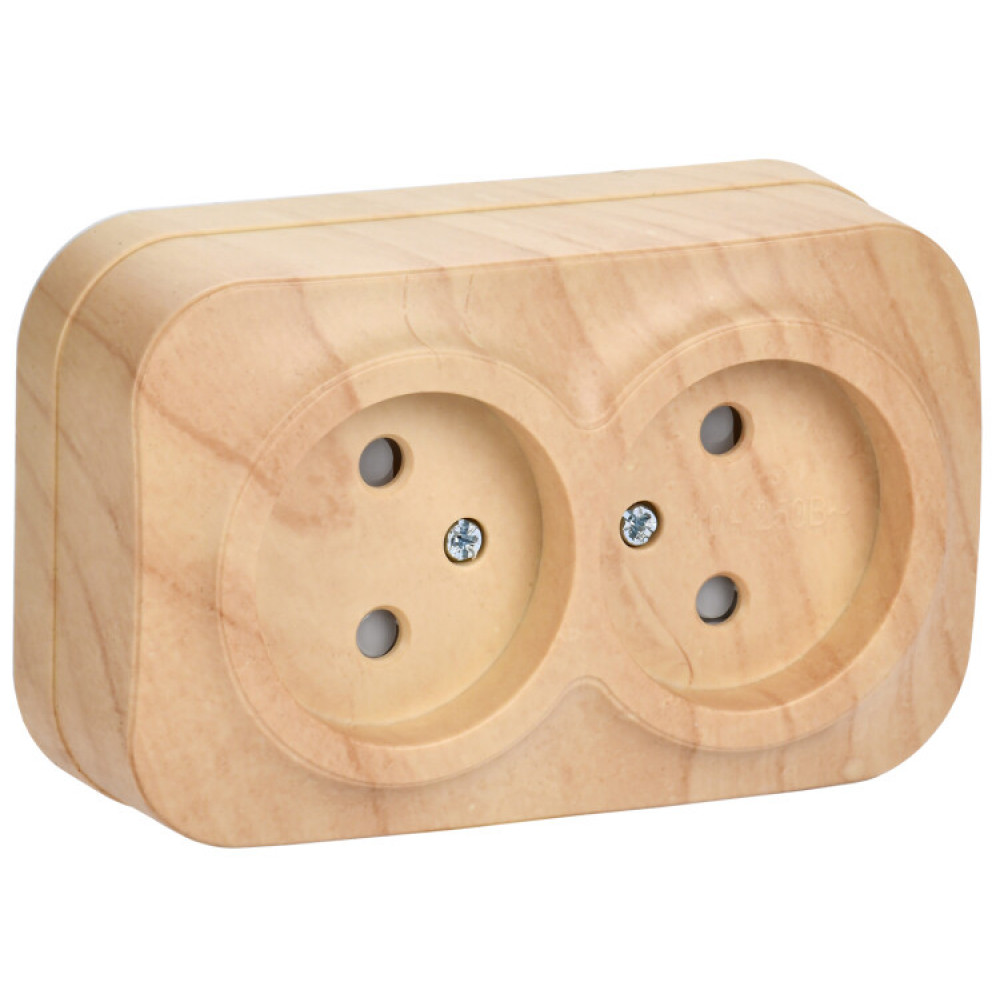 РСш22-2-ХС Розет. 2-ая без з/к с з/ш о/у 10А GLORY сосна ERH23-K34-10, Розетка открытого монтажа