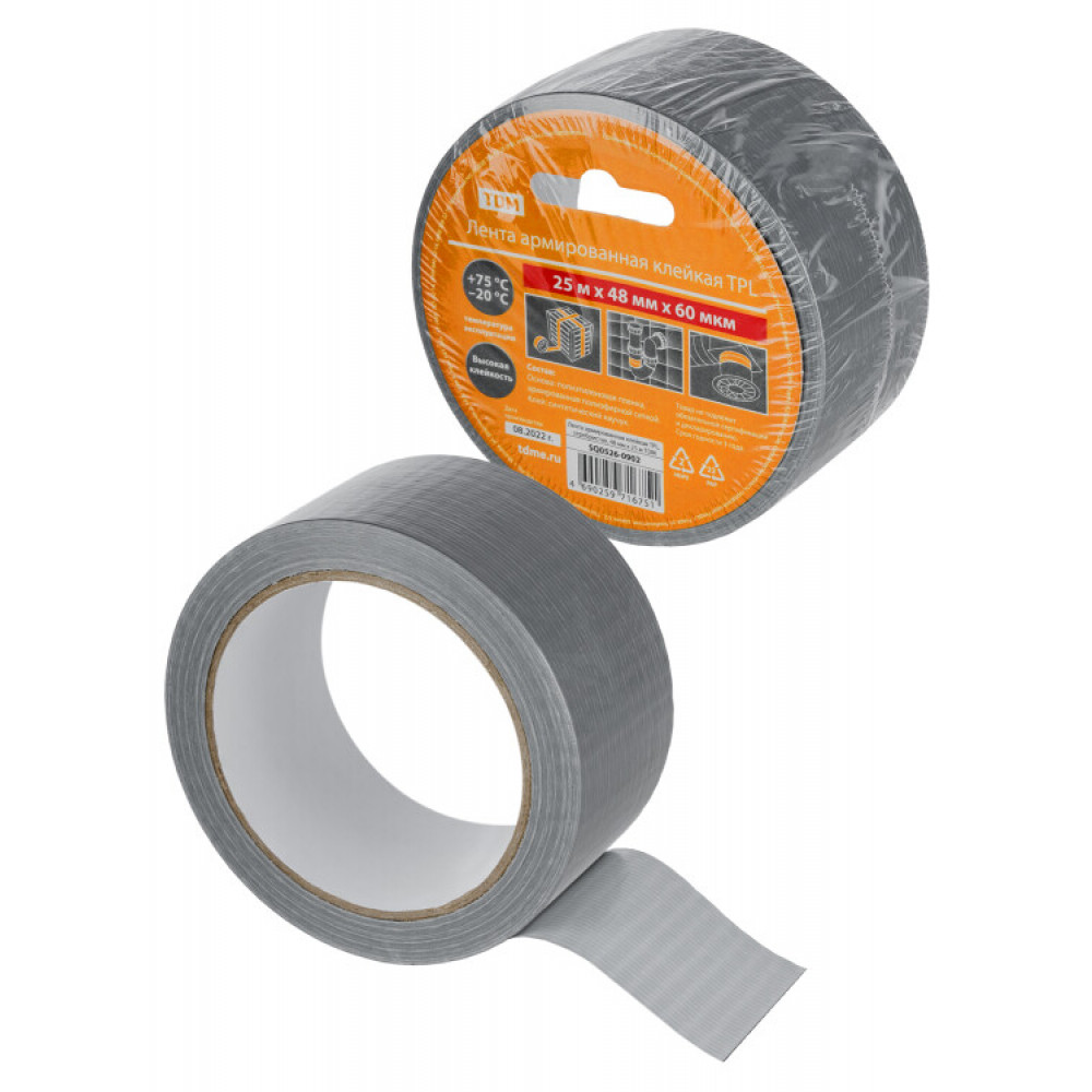 Лента армированная клейкая TPL, серебристая, 48 мм х 25 м SQ0526-0902, Монтажная и крепежная лента, скоба