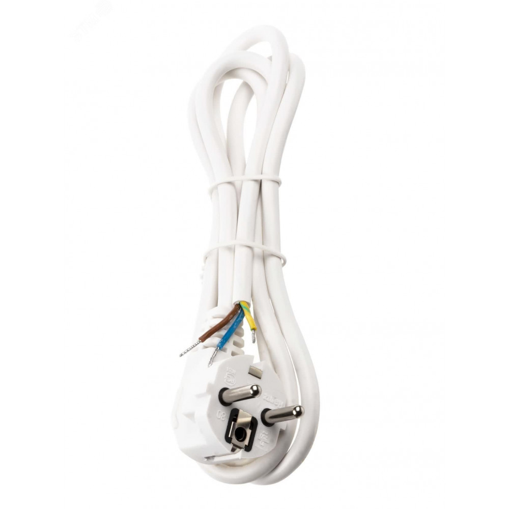 Описание Шнур сетевой с вилкой ПВС 3x0,75мм2 1,5м с/з белый SQ1305-0075