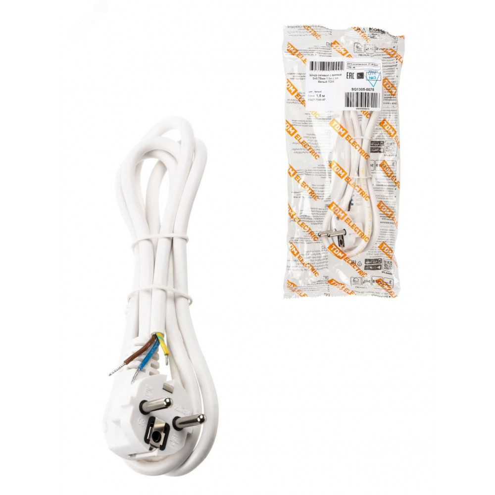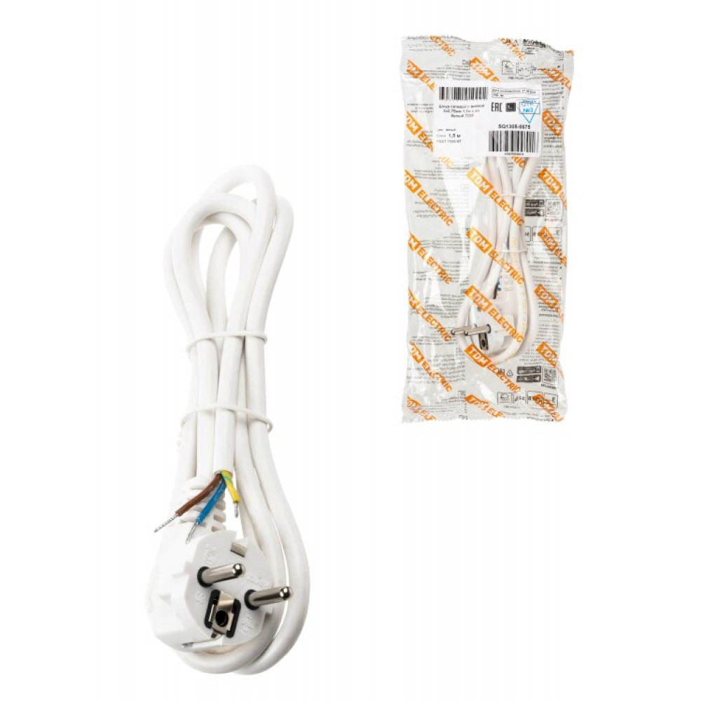 Доставка Шнур сетевой с вилкой ПВС 3x0,75мм2 1,5м с/з белый SQ1305-0075