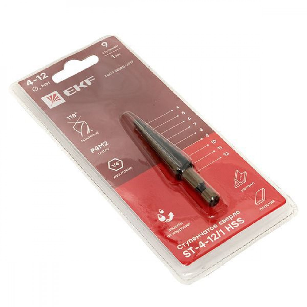 Доставка Ступенчатое сверло HSS (9 ступ.) ST-4-12/1