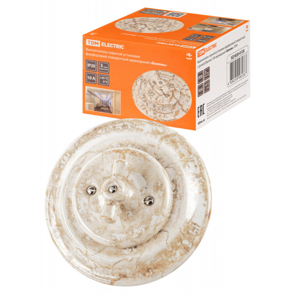 Доставка Выключатель скрытой установки фарфоровый поворотный с ручкой (бантик) 10А мраморный «Болонь» SQ1820-0120
