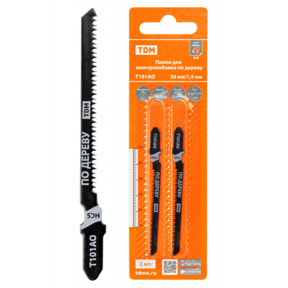 Описание Пилки для электролобзика по дереву, HCS, 50х1,4 мм, фигурный рез, T101AO, 2 шт, "Рубин", SQ1089-0201
