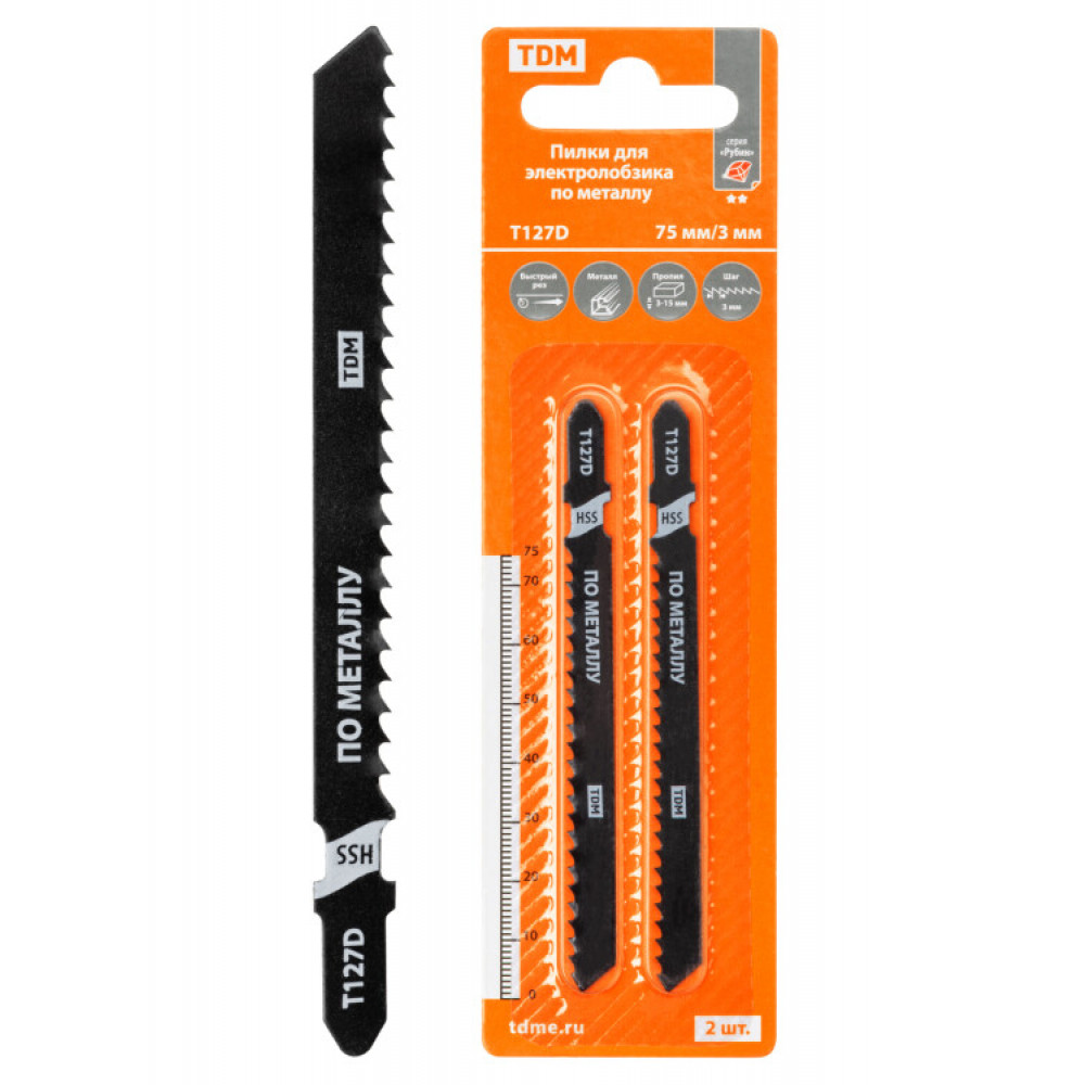 Описание Пилки для электролобзика по металлу, HSS, 75х3 мм, быстрый рез, T127D, 2 шт, "Рубин", SQ1089-0211