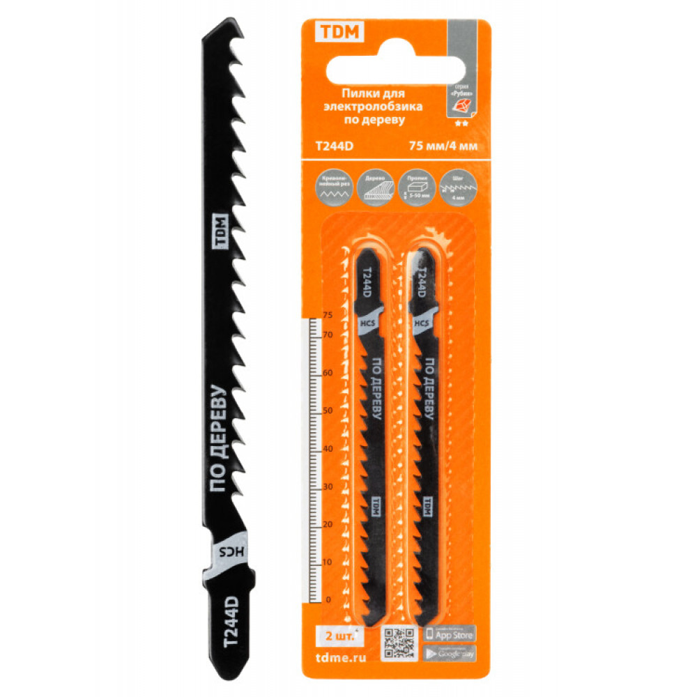 Описание Пилки для электролобзика по дереву, HCS, 75х4 мм, криволинейный рез, T244D, 2 шт, "Рубин", SQ1089-0207