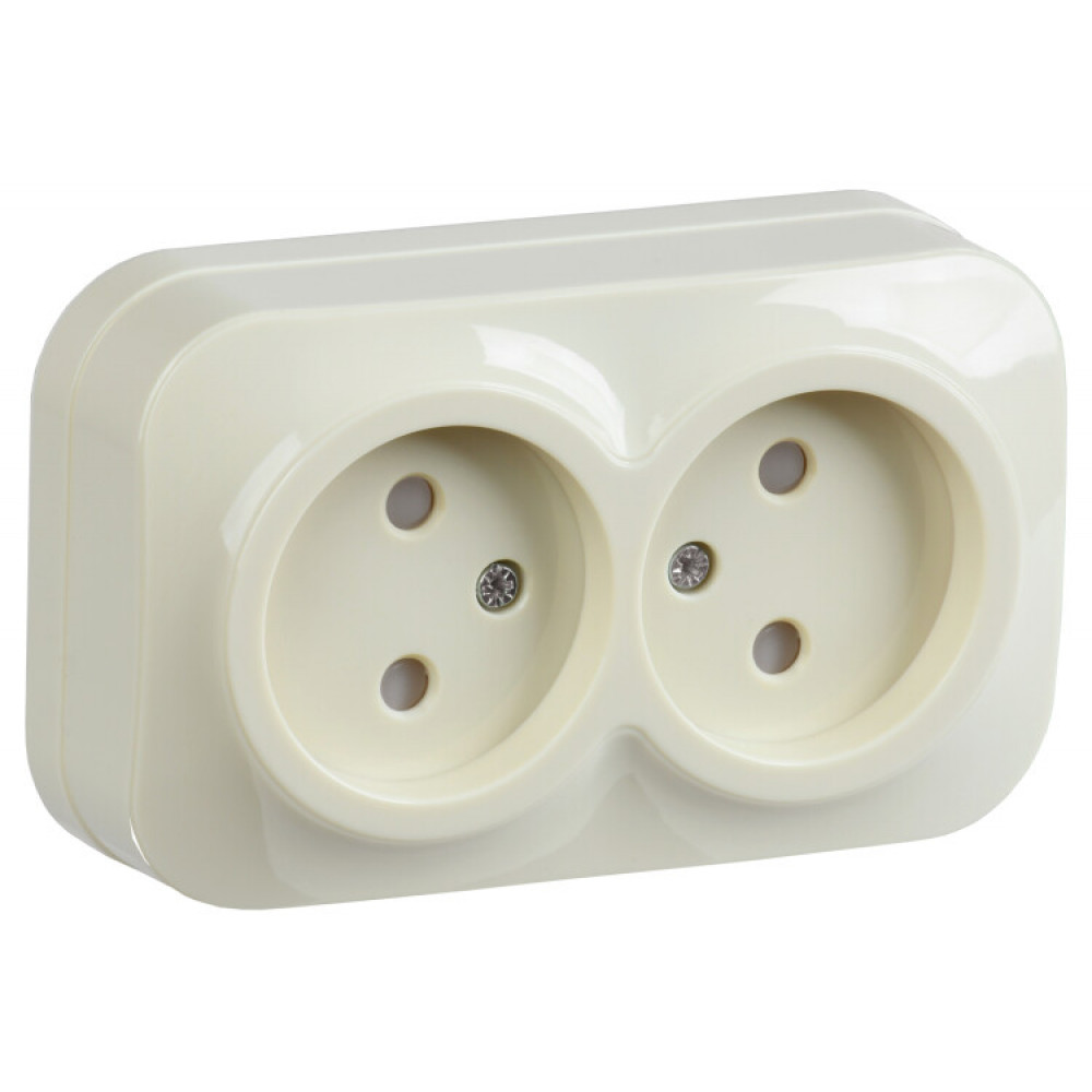 РСш22-2-ХК Розет. 2-ая без з/к с з/ш о/у 10А GLORY крем. ERH23-K33-10, Розетка открытого монтажа