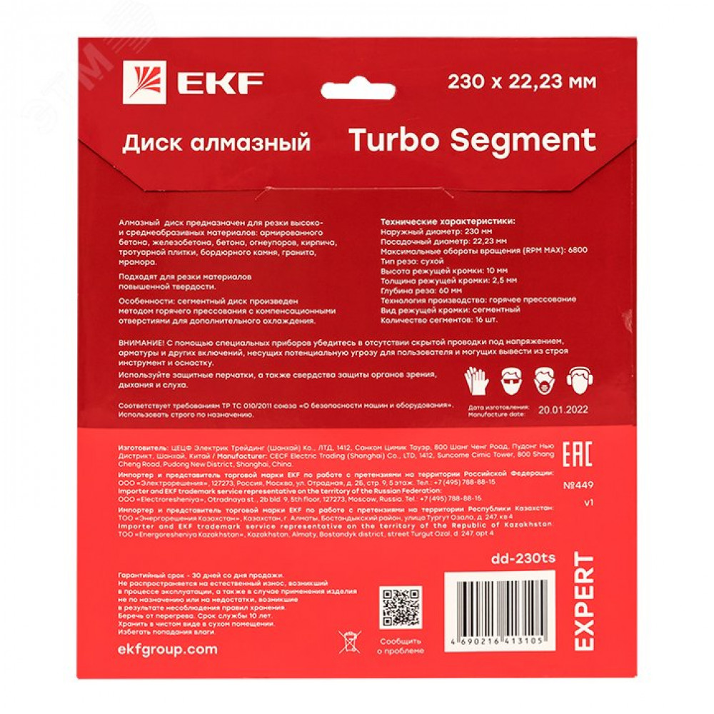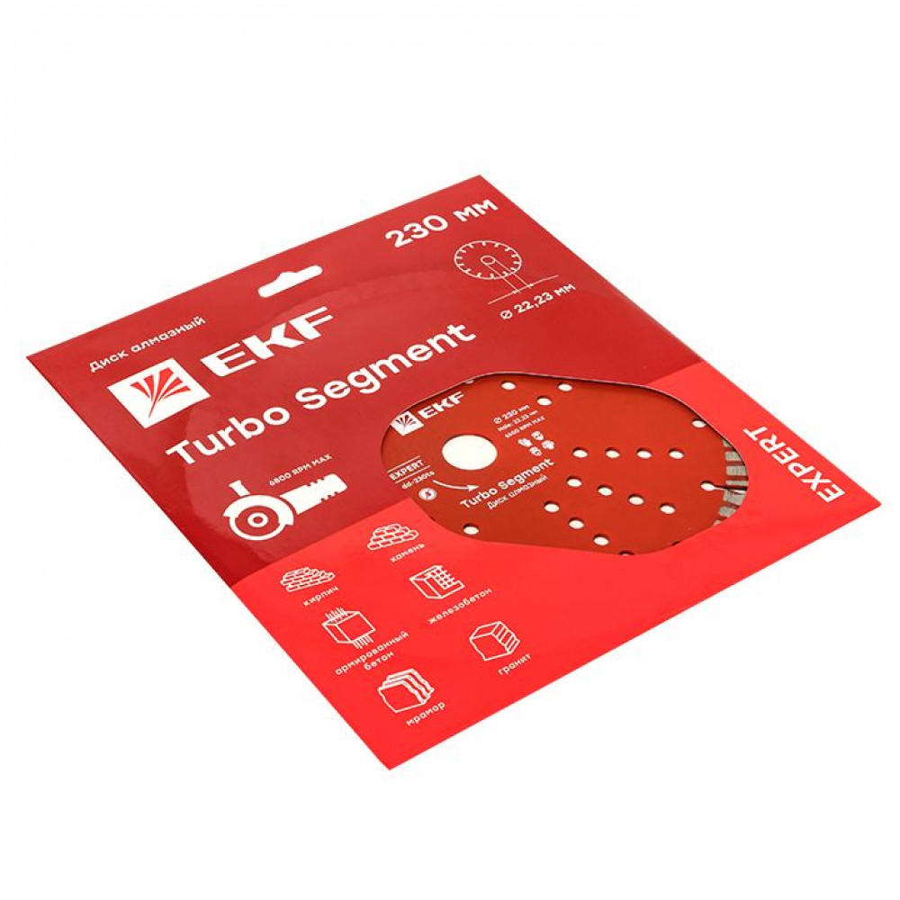 Алмазные диски EKF отличает новая прогрессивная форма режущей части с большим количеством вскрытых алмазов и системой эффективного отвода тепла для резки различных материалов,