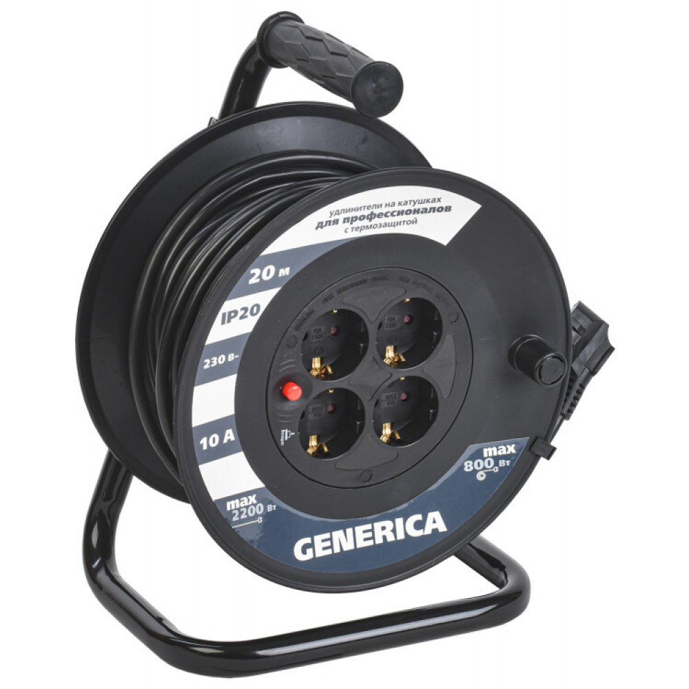 Катушка УК20 с т/з 4 места 2P+PE/20м 3х1,0мм2 WKP10-10-04-20-G, Удлинитель, сетевой фильтр