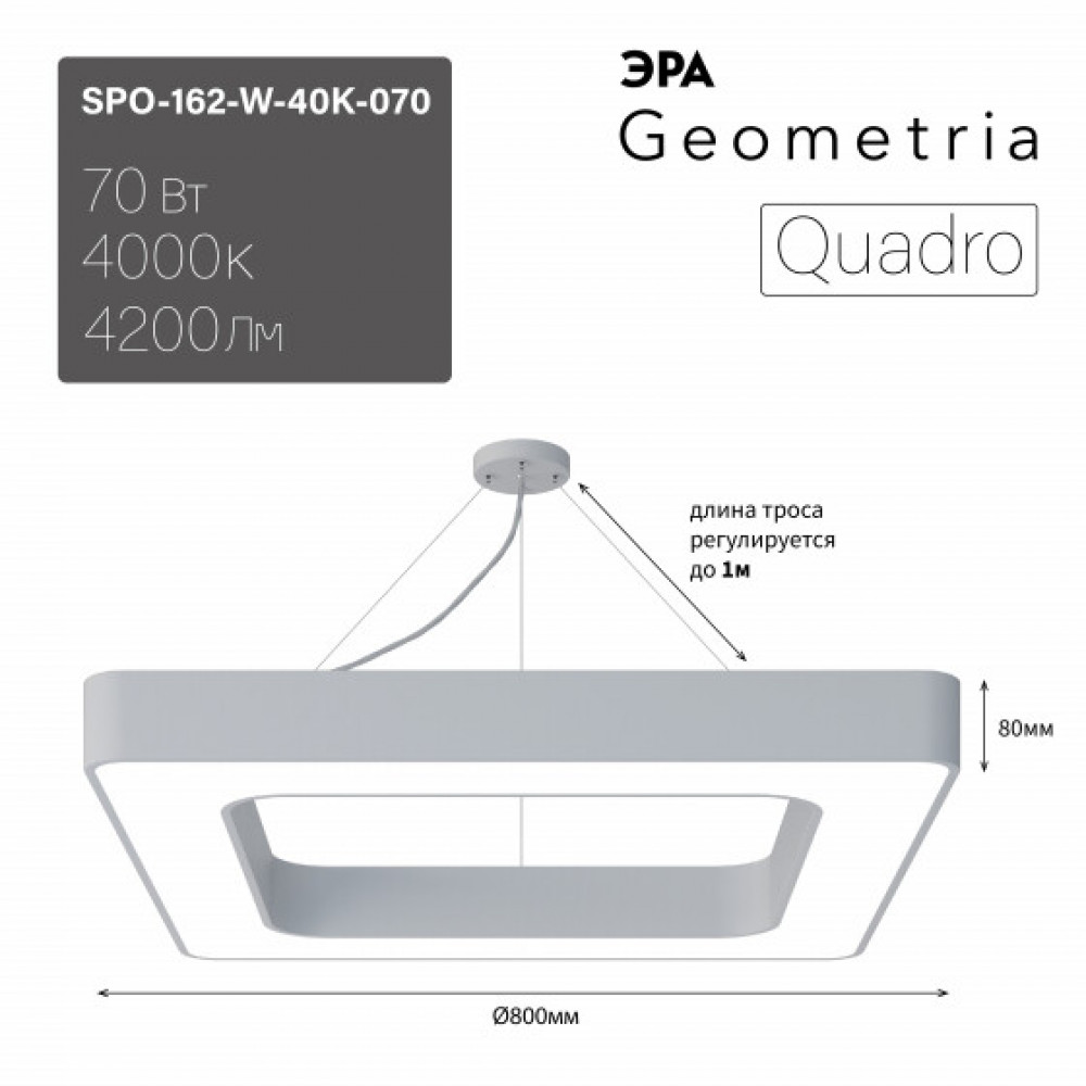 Описание SPO-162-W-40K-070 Светодиодный светильник 800*800*80 см 70Вт 4000К Белый корпус ЛТ Б0058894