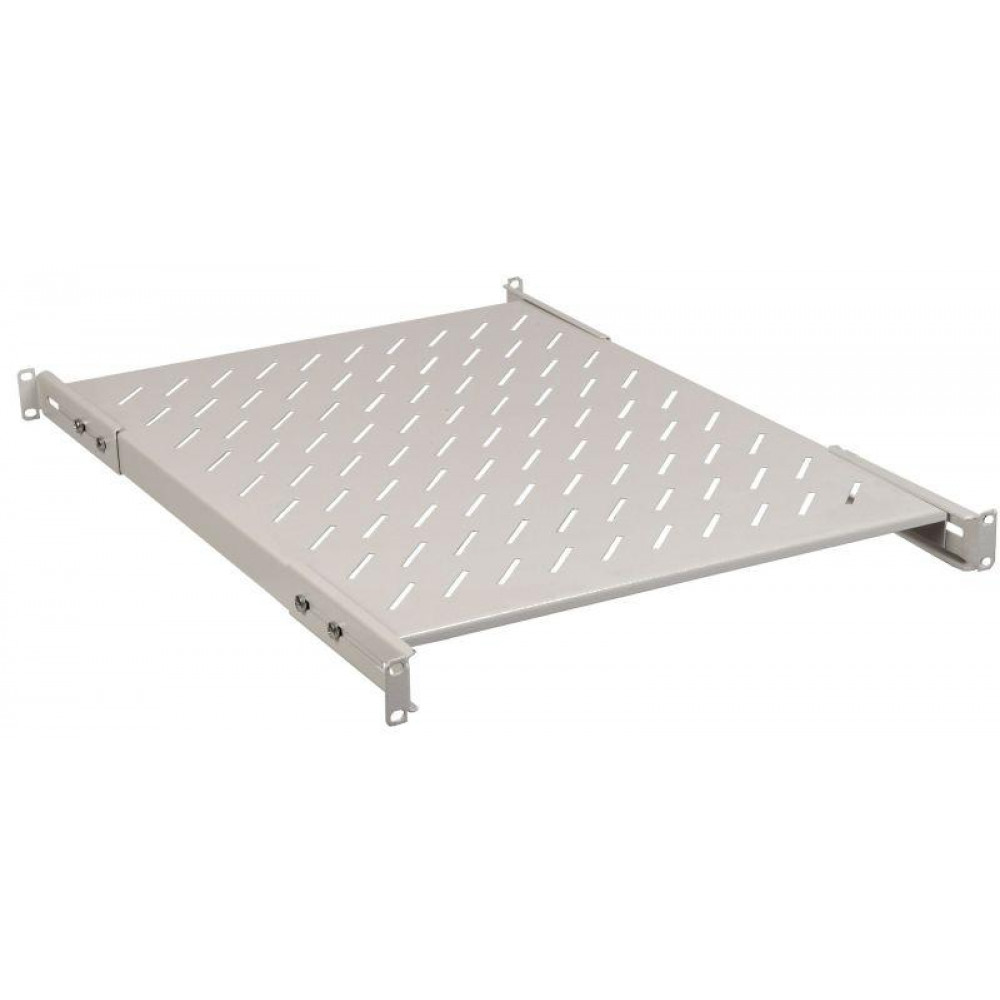 Стационарные полки рассчитаны на тяжелое оборудование с постоянным статичным размещением, крепятся как на фронтальные, так и на задние профили, имеют перфорированную поверхность для обеспечения лучшего охлаждения и отведения теплых воздушных потоков. Ушки, с помощью которых полки крепятся к монтажным профилям, могут регулироваться спереди и сзади в пределах 50 мм, что позволяет увеличить глубину полки на 100 мм и упрощает ее установку внутри шкафа.