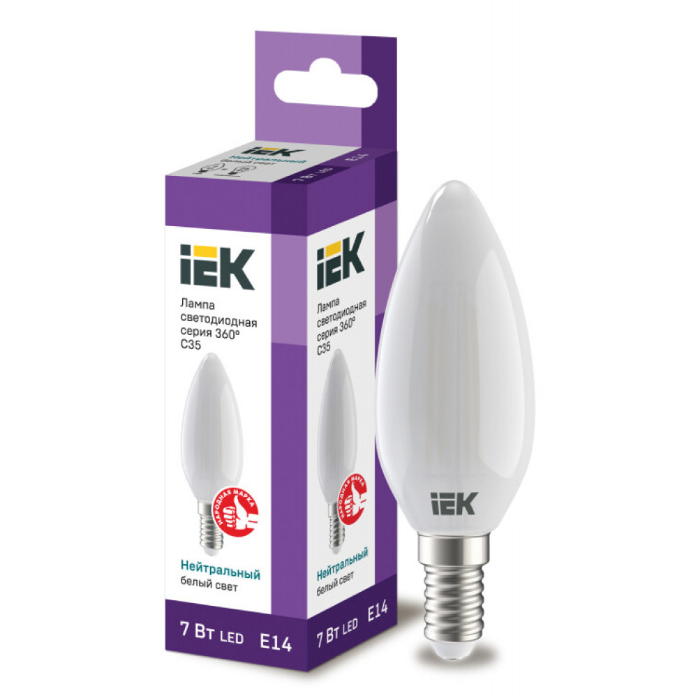 Лампа LED C35 свеча матов. 7Вт 230В 4000К E14 серия 360° IEK с нитевидным светодиодом (филаментная нить) является одним из самых эффективных источников света.