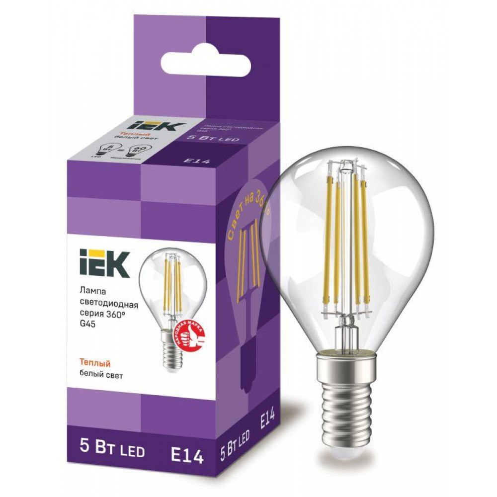 Лампа LED G45 шар прозр. 5Вт 230В 3000К E14 серия 360° IEK с нитевидным светодиодом (филаментная нить) является одним из самых эффективных источников света.