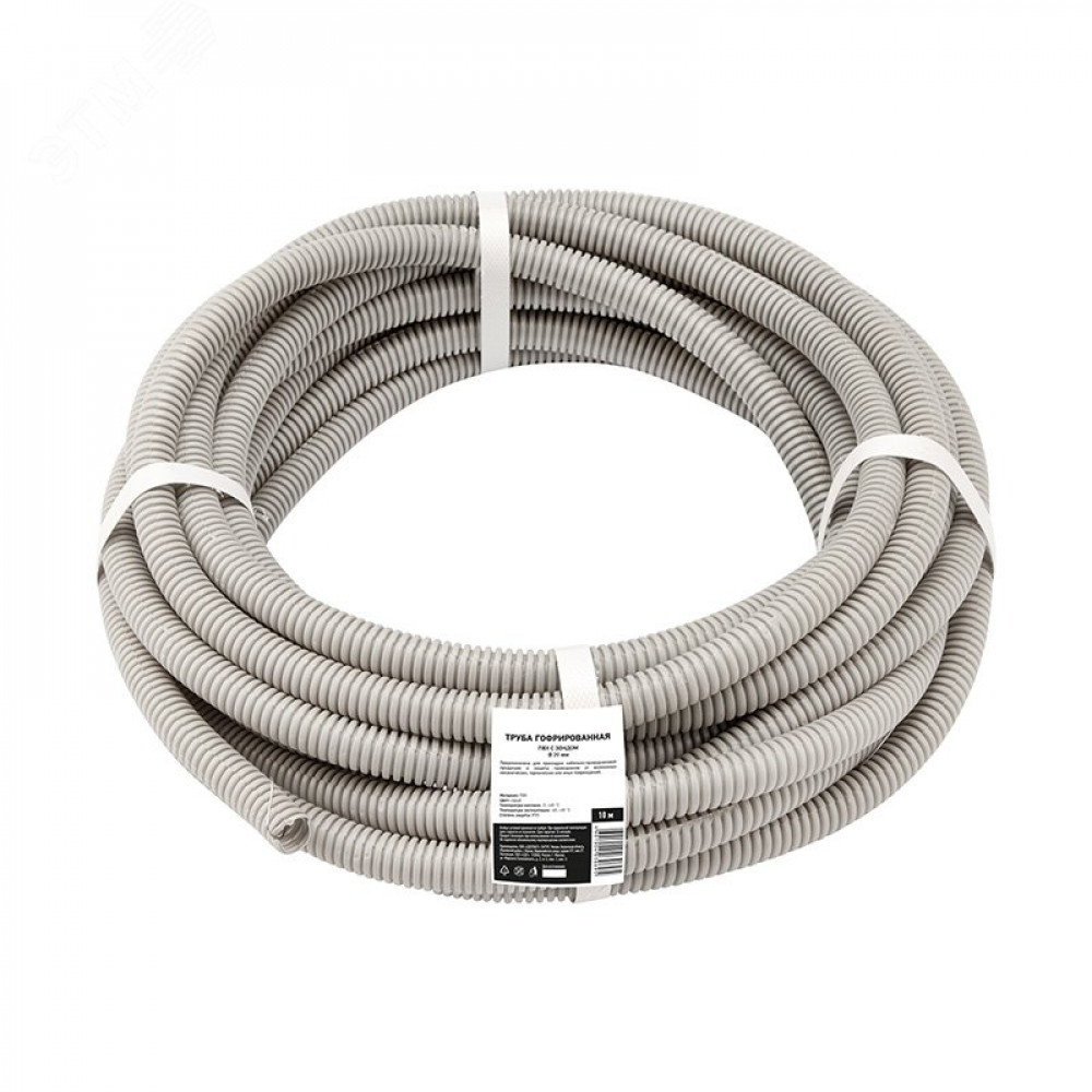 Труба гофрированная из ПВХ, с зондом, 20 мм 28-0020-10, Труба и короб для прокладки кабеля