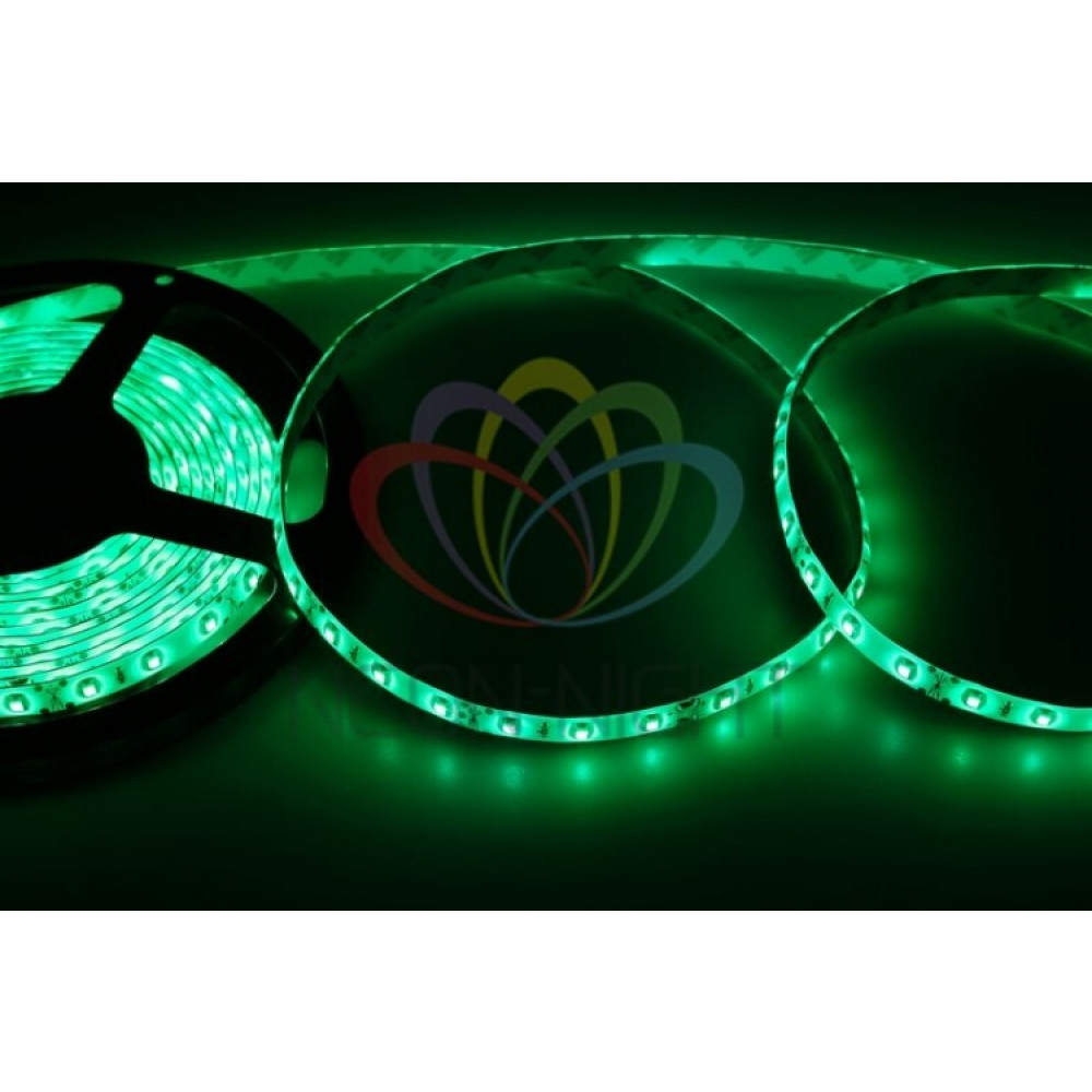 Лента светодиодная 12В, SMD2835, 4,8Вт/м, 60 LED/м, зеленый, 8мм, 5м, IP65 141-354, Лента светодиодная цветная