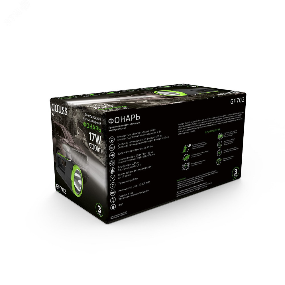Особенностью прожекторных фонарей Gauss является высокая яркость и мощность света. Дальность луча от самого мощного фонаря составляет 500 метров. Все модели прожекторных фонарей обладают современным дизайном корпуса и покрытием Soft touch - без эффекта скольжения в руках и приятным тактильным ощущением. Данная серия представлена в различных мощностях и конфигурациях, с большим количеством режимов освещения. Прожекторный фонарь Gauss хорошо подойдет для использования на даче, для альпинизма, поисково-спасательных работ, а также для кемпинга или активного отдыха за городом. Практически все фонари Gauss оснащены Li-ion аккумулятором с большой емкостью, чтобы обеспечить непрерывную работу даже в самых критичных моментах. Флагманы модельного ряды оснащены функцией ''пауэрбанка'' – помогут зарядить телефон в условиях похода или отсутствия электричества.