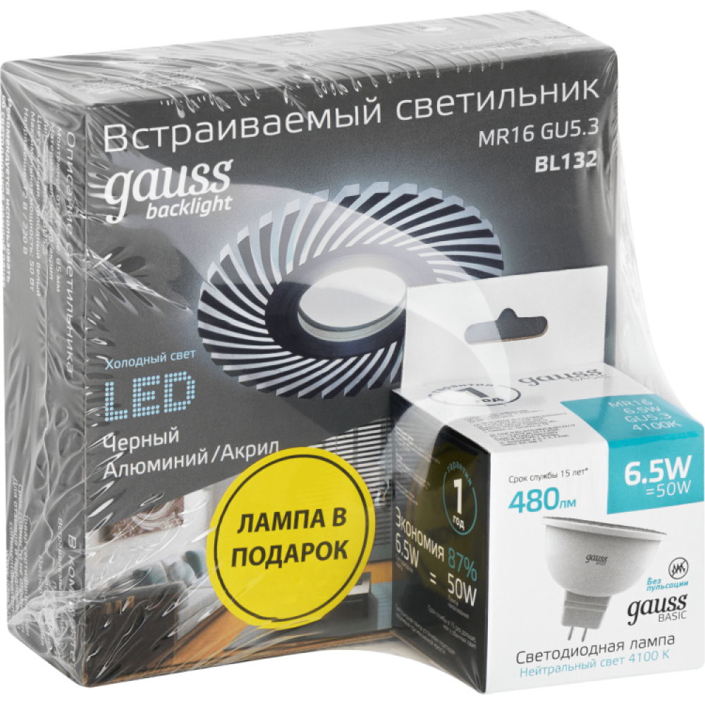 Набор Светильник Backlight BL132 3W + Лампа MR16 6,5W 480lm 4100K GU5.3 LED BL132P, Лампа светодиодная