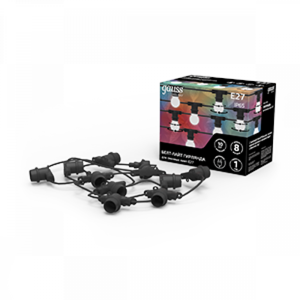 Описание Гирлянда светодиодная "Белт Лайт" серия Holiday для сменных ламп Е27, 10 ламп, 7,7 м, IP65, черный, 1/8 HL070