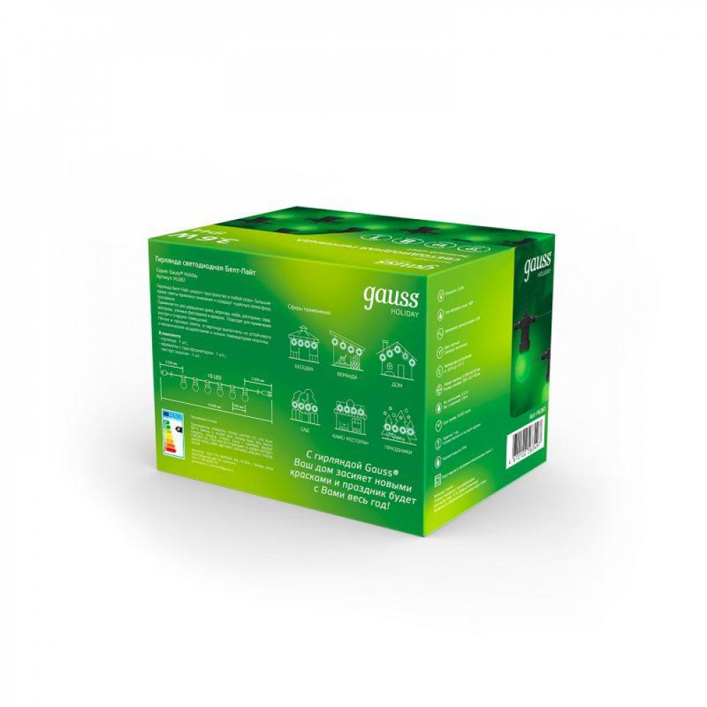 Описание Гирлянда светодиодная "Белт Лайт" серия Holiday, 10 ламп, 7,7 м, IP44, зеленый, 1/6 HL061