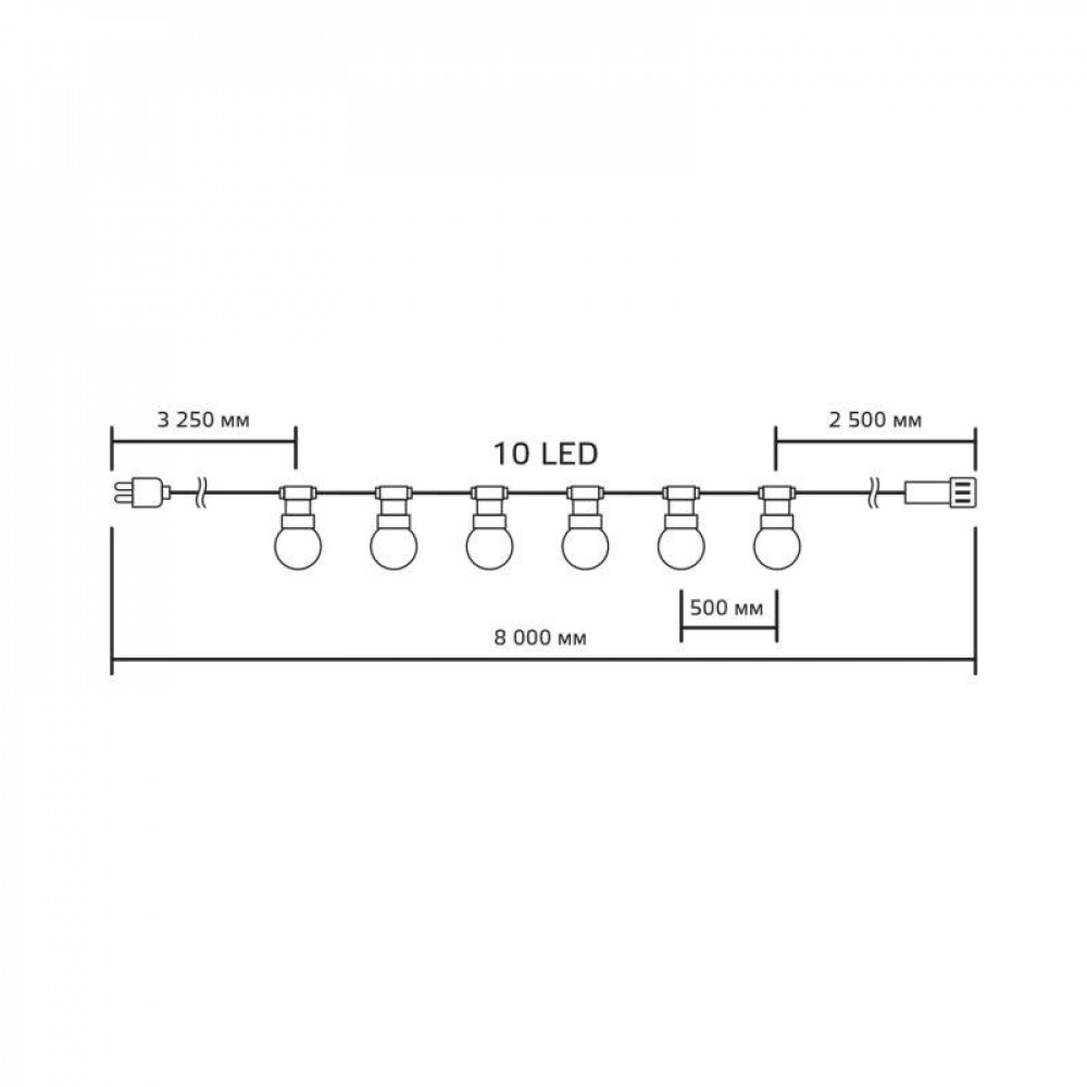 Гирлянда светодиодная "Белт Лайт" серия Holiday, 10 ламп, 7,7 м, IP44, белый, 1/6 HL062, Светильник декоративный