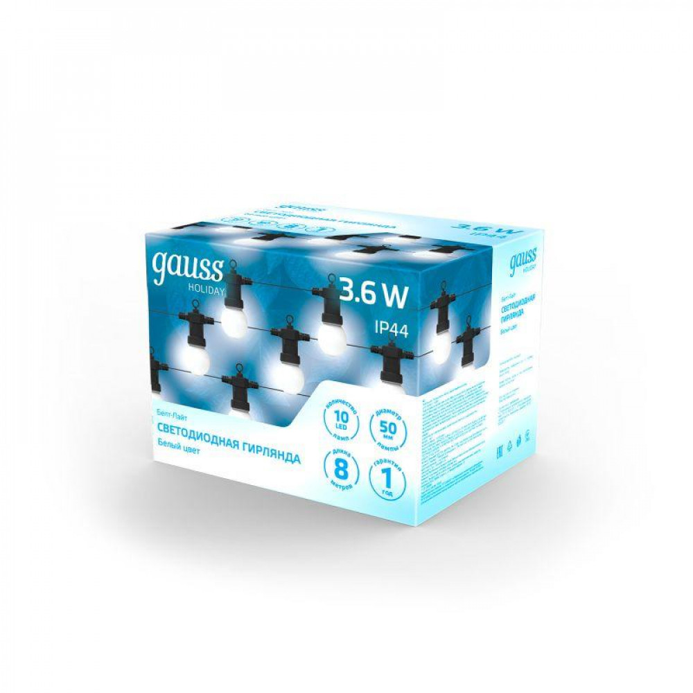 Описание Гирлянда светодиодная "Белт Лайт" серия Holiday, 10 ламп, 7,7 м, IP44, белый, 1/6 HL062