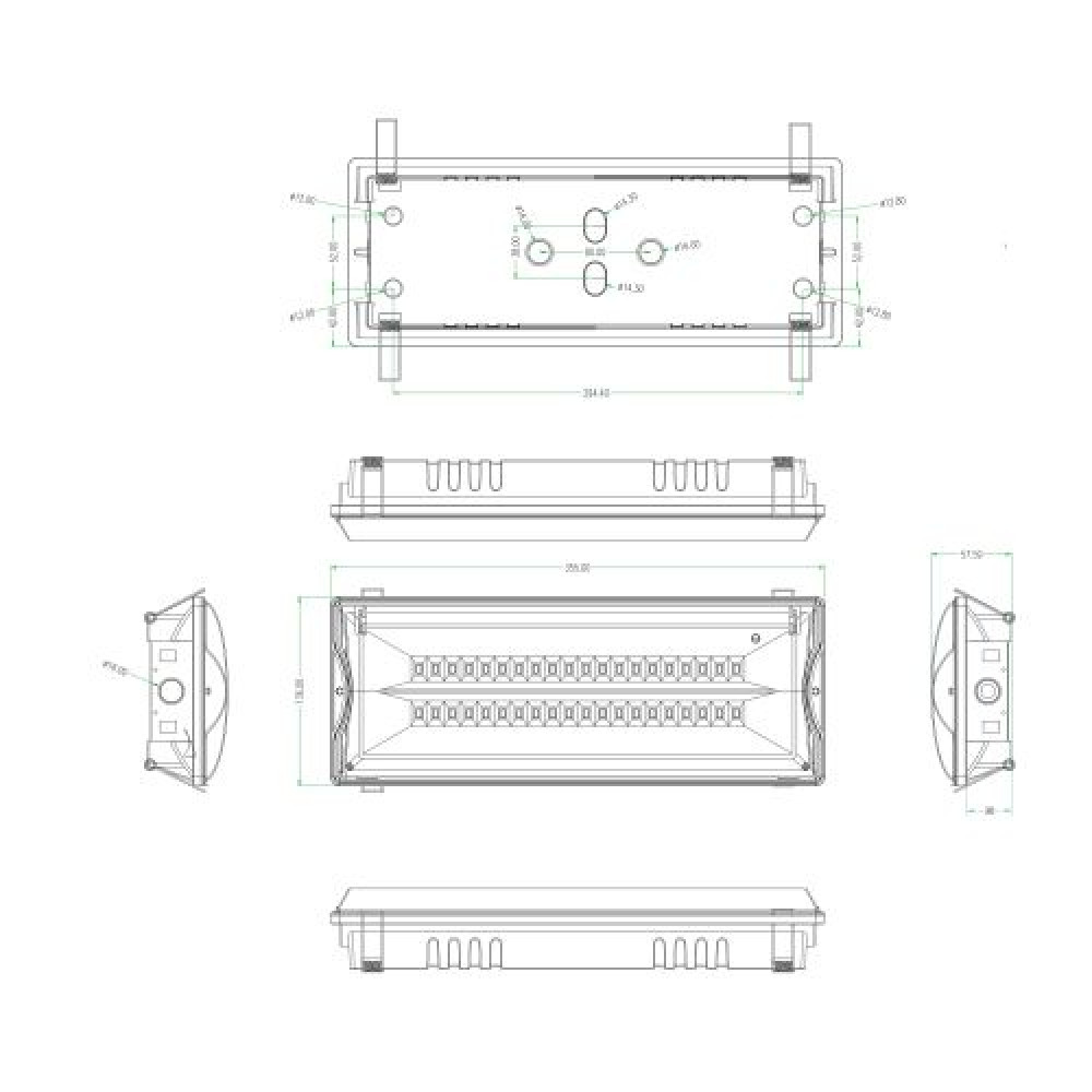 Светильник аварийный светодиодный. Область применения: Предназначен для освещения путей эвакуации, коридоров, проходов, запасных дверей. Степень защиты от окружающей среды:IP20. Тип рассеивателя: прозрачный. Тип кривой: Д. Габариты: 355x136x58мм. Питающее напряжение светильника:230Вт.