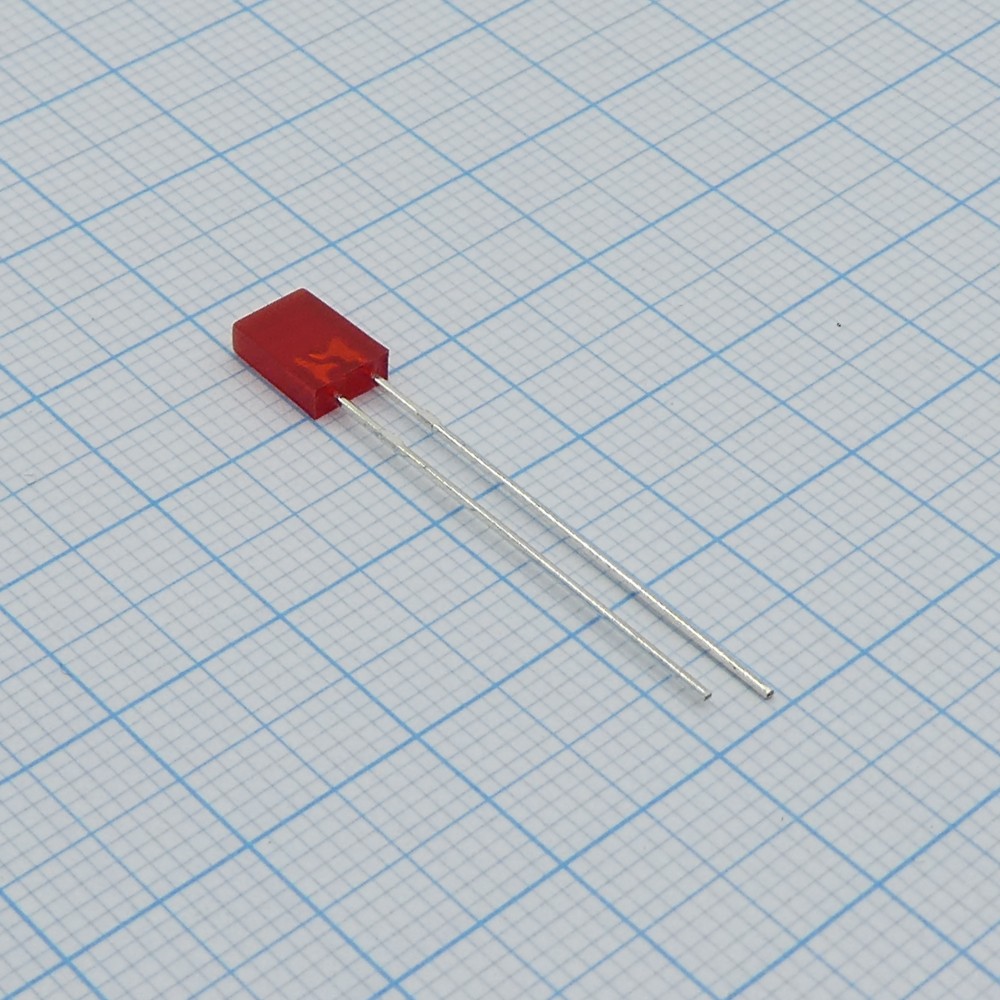 Светодиод прямоугольный 2х5мм плоская вершина красный 80...150мКд 140° 20мА