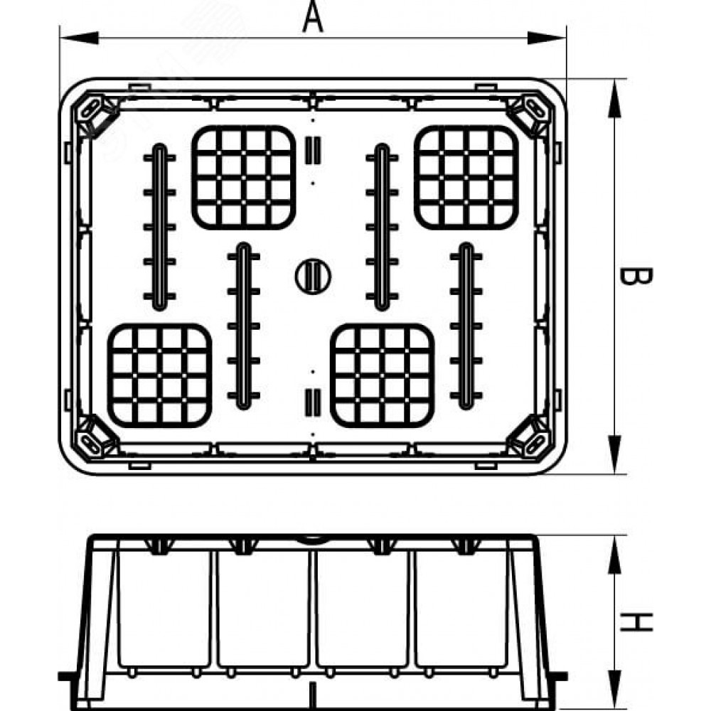 Описание Коробка ответвительная прямоуг. для твердых стен, IP40, 118х96х50мм 59362