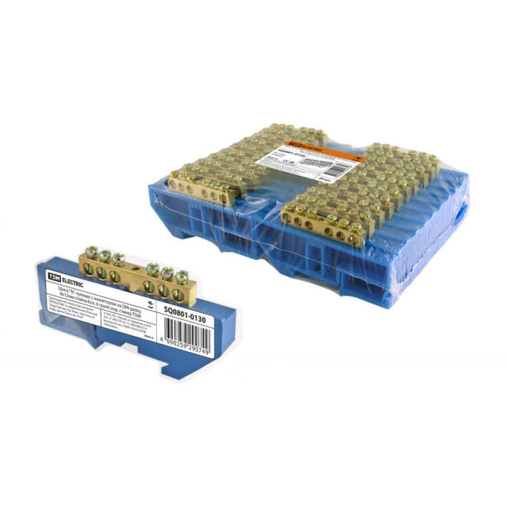 Шина "N" нулевая с изолятором на DIN-рейку 8x12мм стойка бол. 6 групп инд. стикер SQ0801-0130, Блок клеммный и нулевая шина