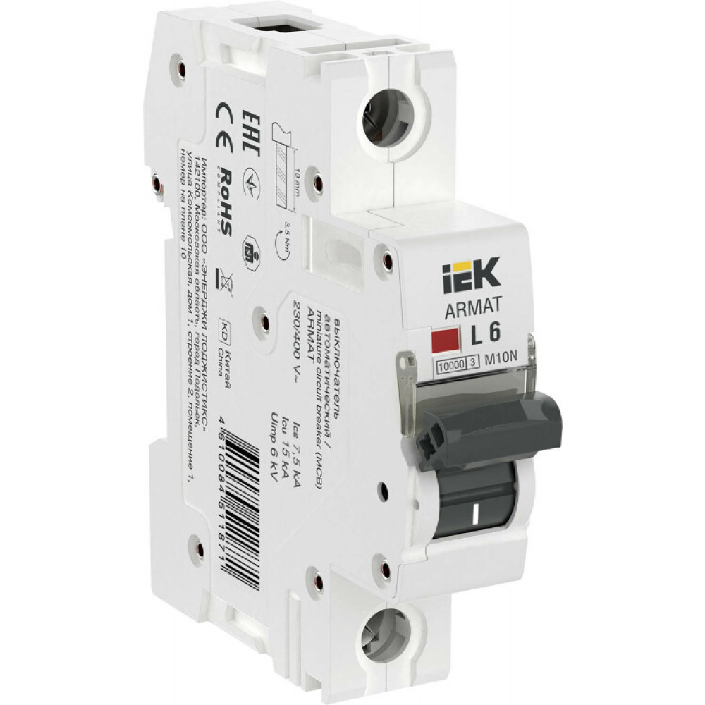 Автоматический выключатель ARMAT M10N 1P L 6А AR-M10N-1-L006, Выключатель автоматический модульный