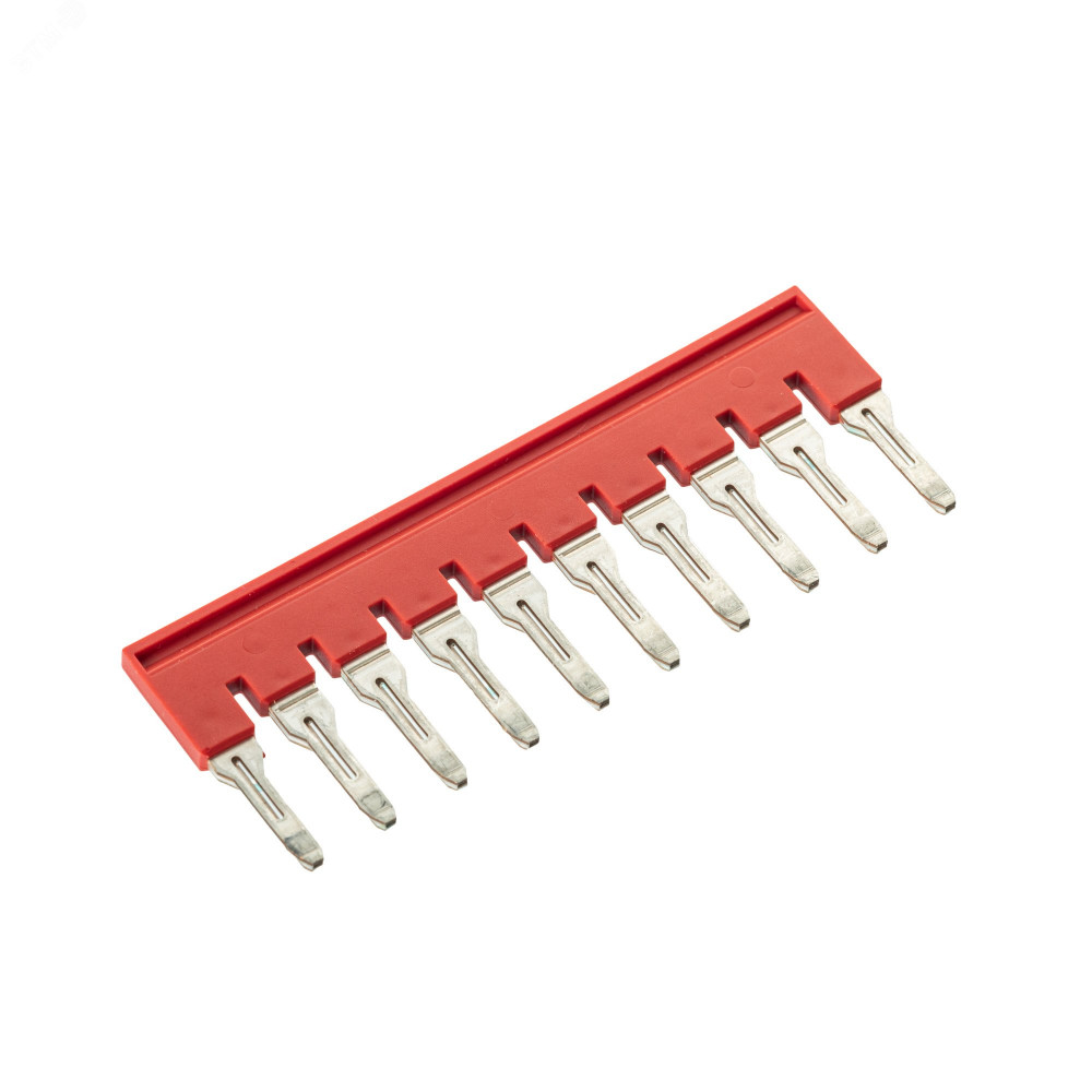 Вставные перемычки предназначены для быстрого и надежного перемыкания клемм на 6 мм2. Применяются с винтовыми и push-in клеммами. Допускается выкусывание отдельных полюсов, кроме крайних. Шаг полюсов 8,2 мм. Количество полюсов - 10.