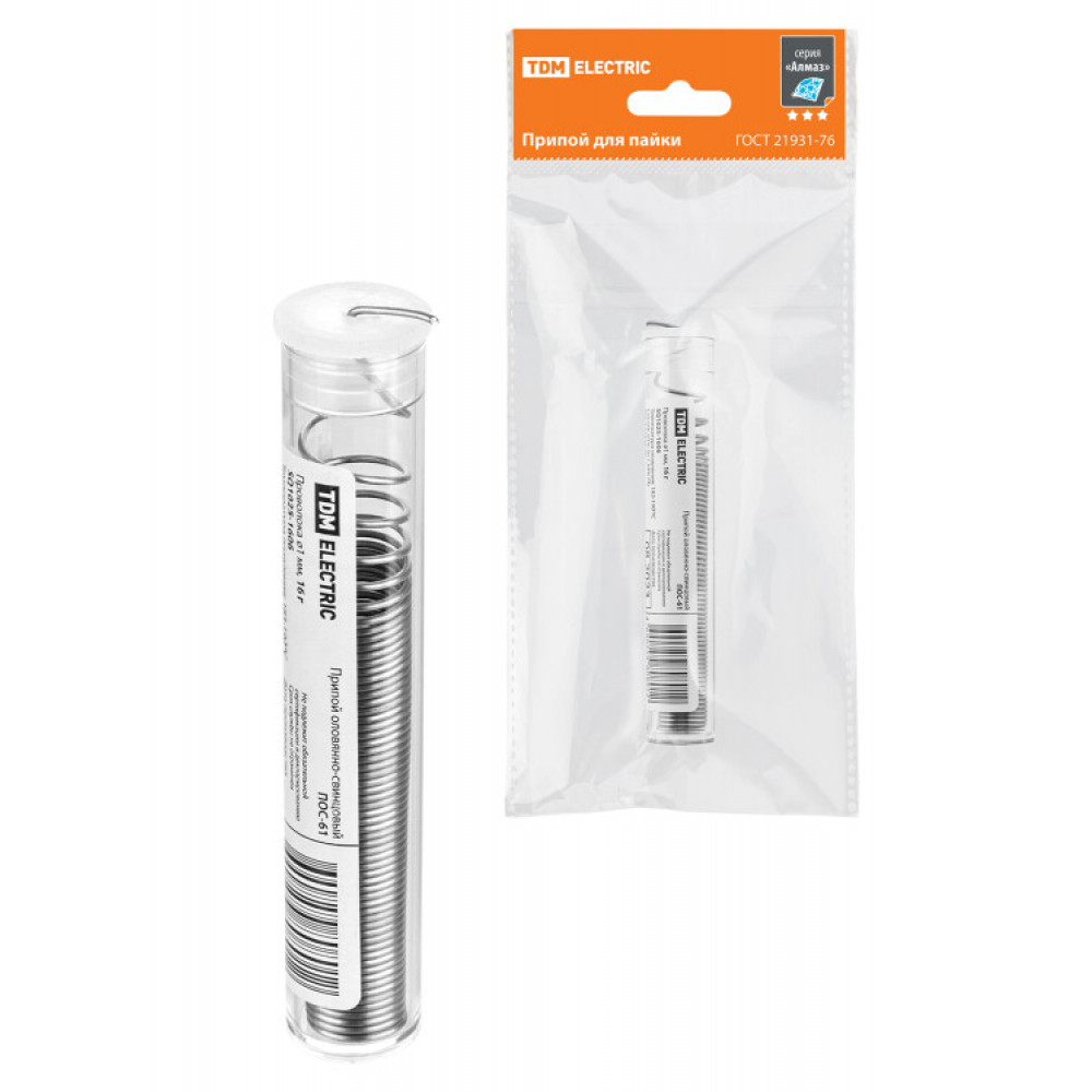 Описание Припой ПОС 61, проволока, ГОСТ 21931-76, 1 мм, 16 г, колба, серия "Алмаз" SQ1025-1606