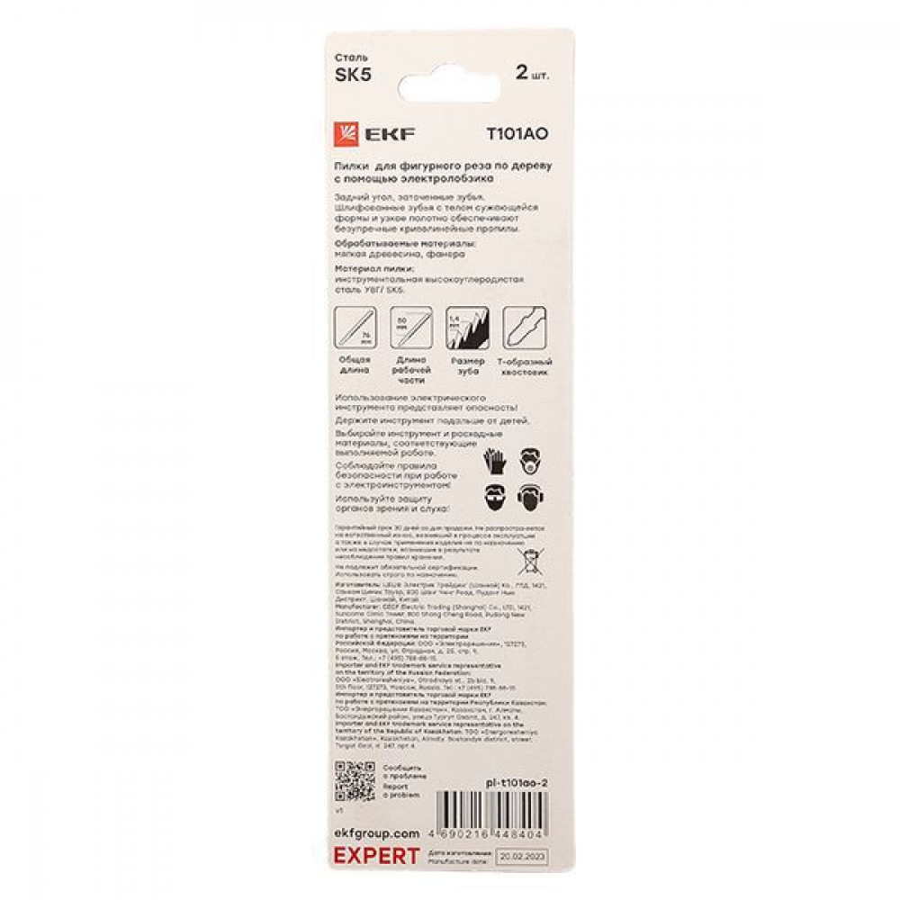 ← Пилки для электролобзика обратные T101BR (чистовой рез по ДВП)(SK5)(2 шт) Expert pl-t101br-2