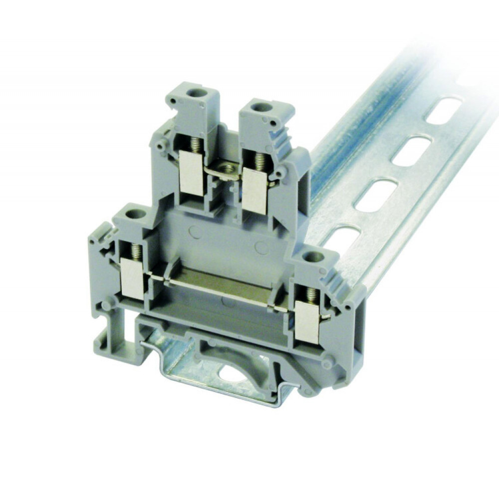 Клемма винтовая двухуровневая 4 контакта, 4 мм2, серая TB4DL, Клемма на DIN-рейку