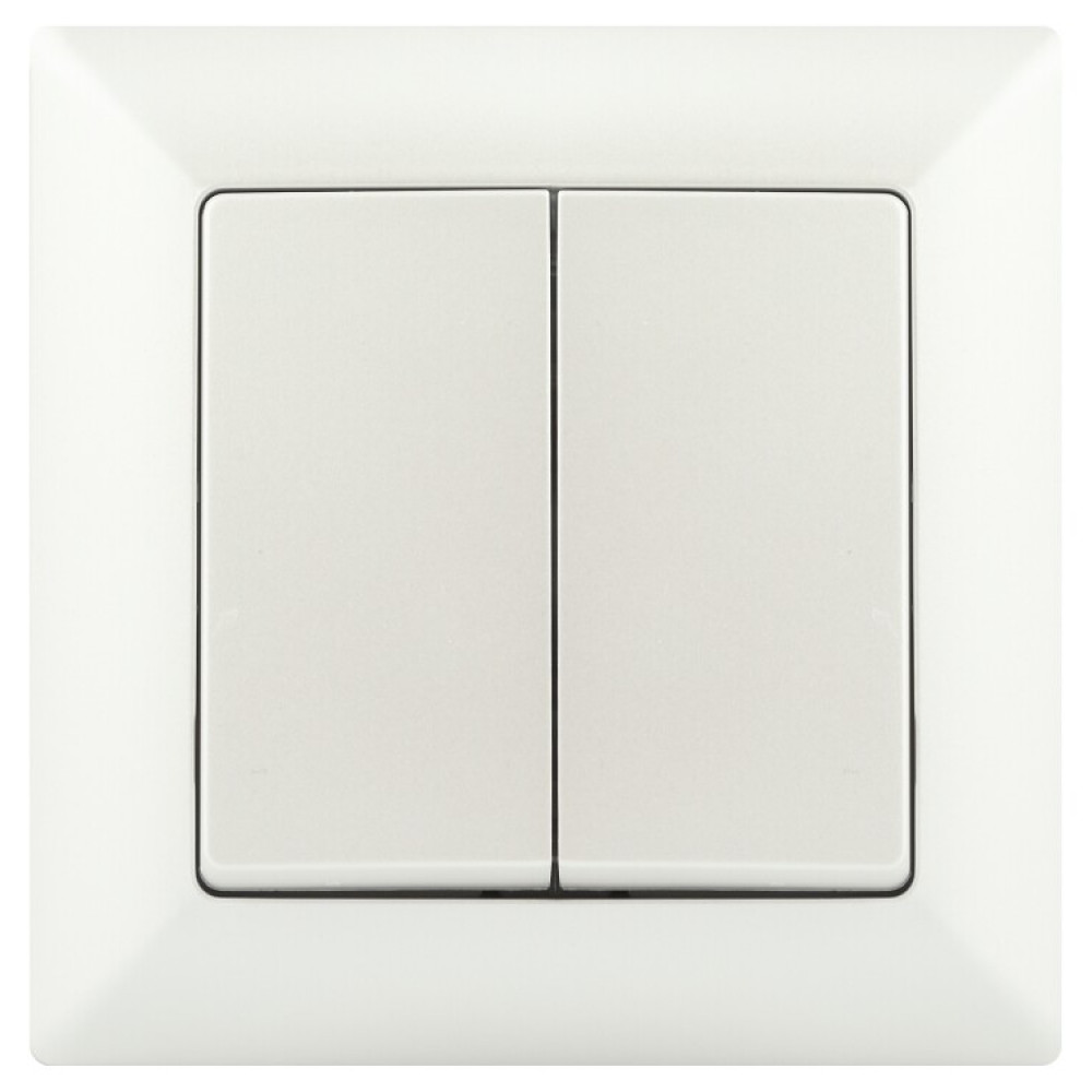 Переключатель Solo 4-107-06 двухклавишный, 10А-250В, IP20, СУ, перламутр Б0053614, Выключатель и переключатель скрытого монтажа