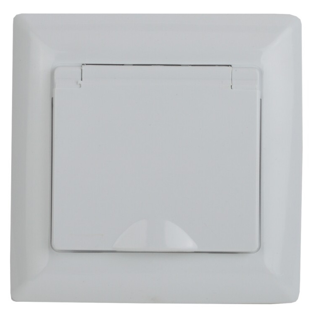 4-209-01 Розетка 2P+E Schuko с крышкой штор., 16А-250В, СУ, IP44, Solo, белый Б0043361, Розетка скрытого монтажа