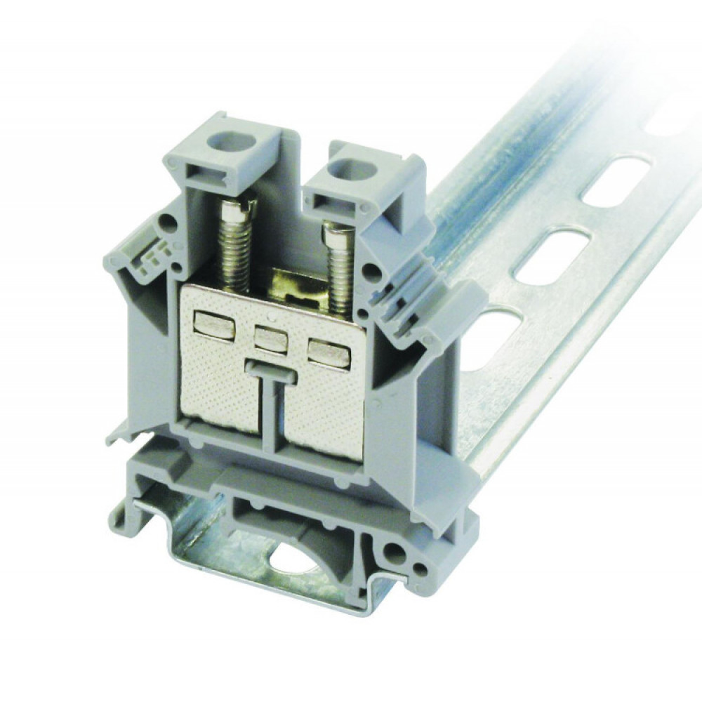 Клемма винтовая проходная 2 контакта 6 мм2, серая TB6, Клемма на DIN-рейку