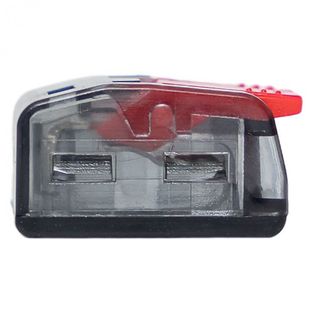 Рычажная клемма, соединительная, универсальная, 2 полюса, сечение проводника 0,08 - 4,0 мм кв., 250V, 32A,цвет корпуса: прозрачный, цвет рычагов: синий,в упаковке 50 штук (Аналог 221-412)