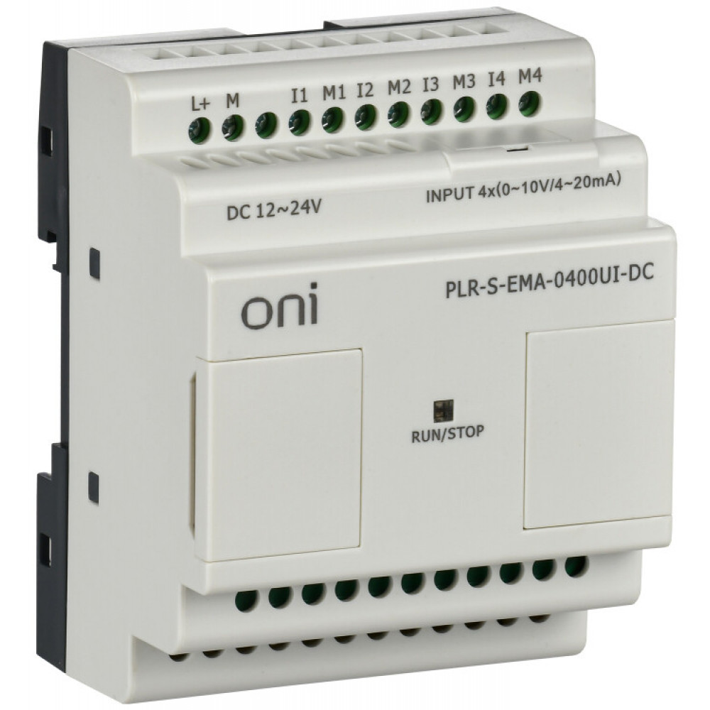 Логическое реле PLR-S ONI. Модуль расширения 4 каналами аналового входа (0-10В/0..20мА). Напряжение питания 12-24 В DC.