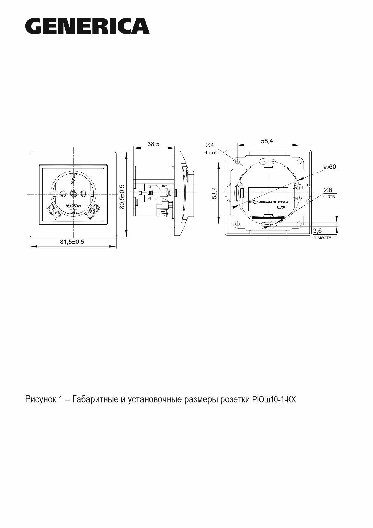 Описание KVARTA РОЗ. 1АЯ С З/К РЮШ10-1-ККМ 16А USBX2 2,1А КРЕМ. KV-R14-16-U2-K33
