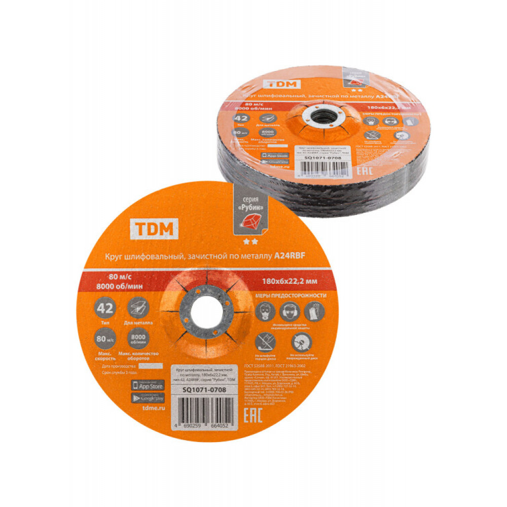 Описание Круг шлифовальный, зачистной по металлу, 180х6х22,2 мм, тип 42, A24RBF, серия "Рубин", SQ1071-0708
